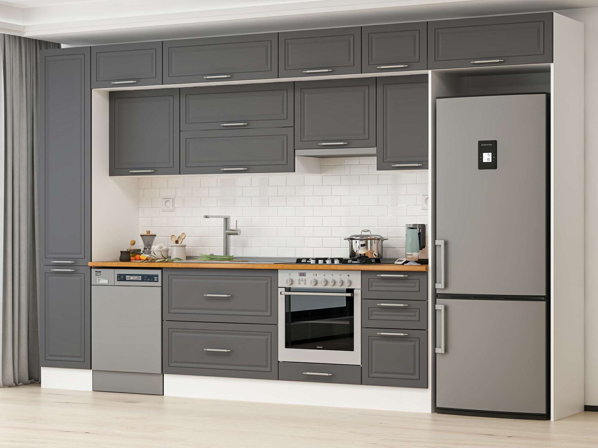 Alvinka 380X240 Cm Klasik Mebran Mutfak Dolabı Mbb-E90B45S45-1