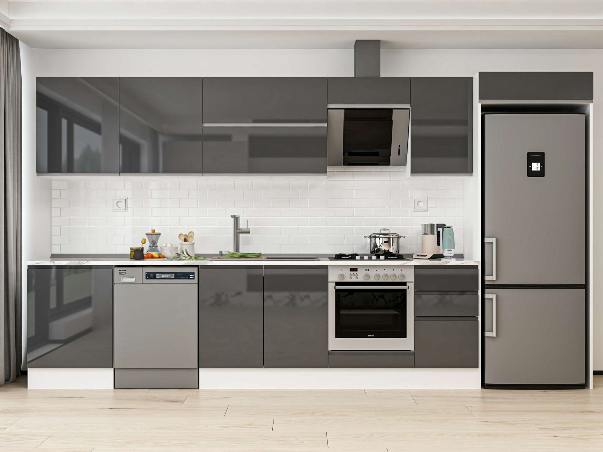 Alvinka 385X222 Cm High Gloss Mutfak Dolabı Mb-E80S60S45-2 High Gloss | Antrasit - Mdf
