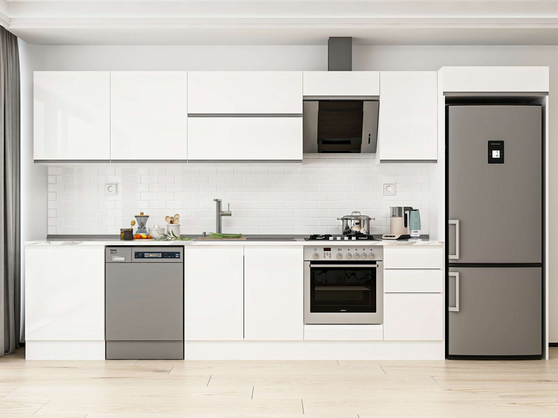Alvinka 385X222 Cm High Gloss Mutfak Dolabı Mb-E80S60S45-2 High Gloss | Beyaz - Mdf