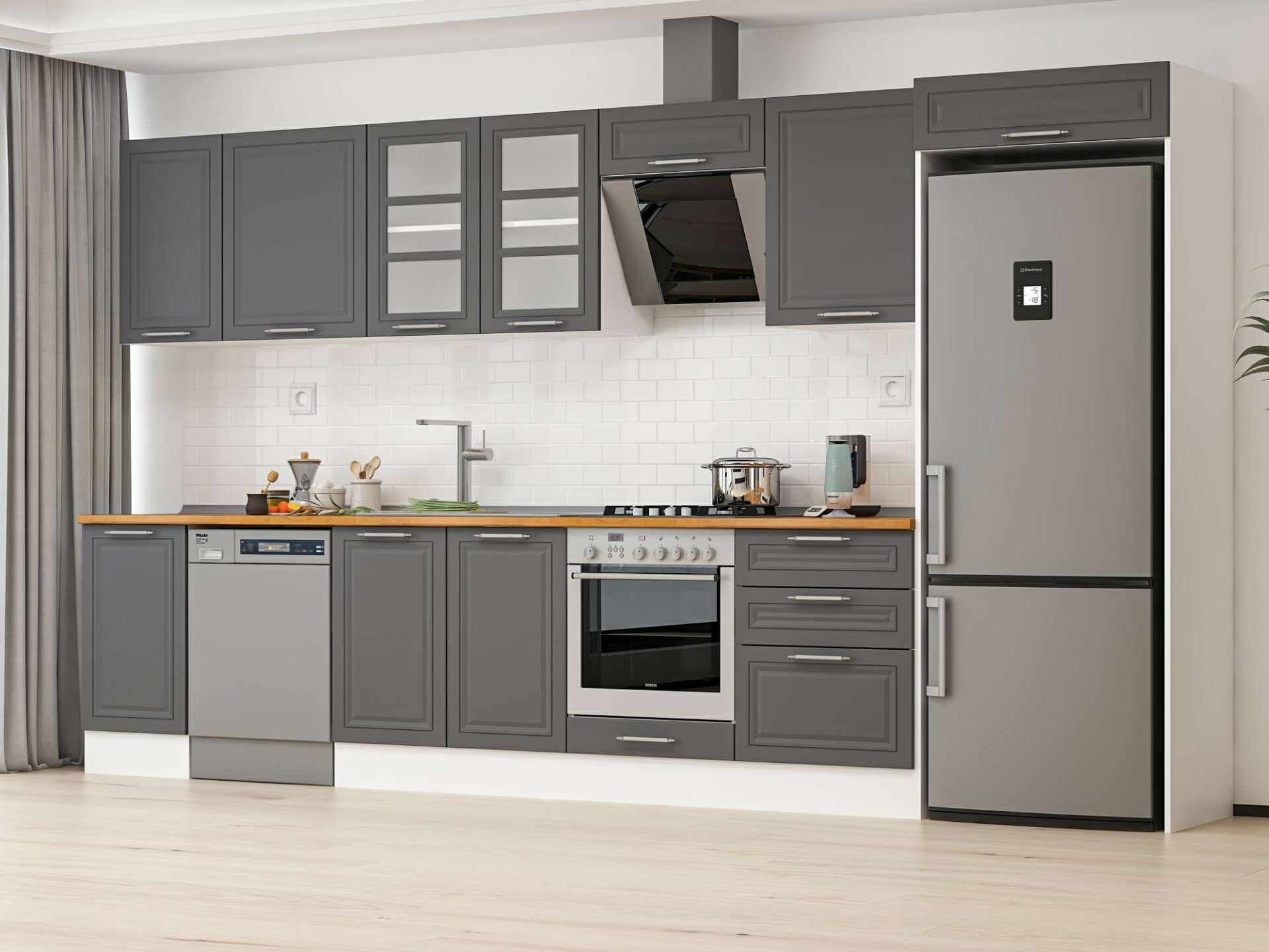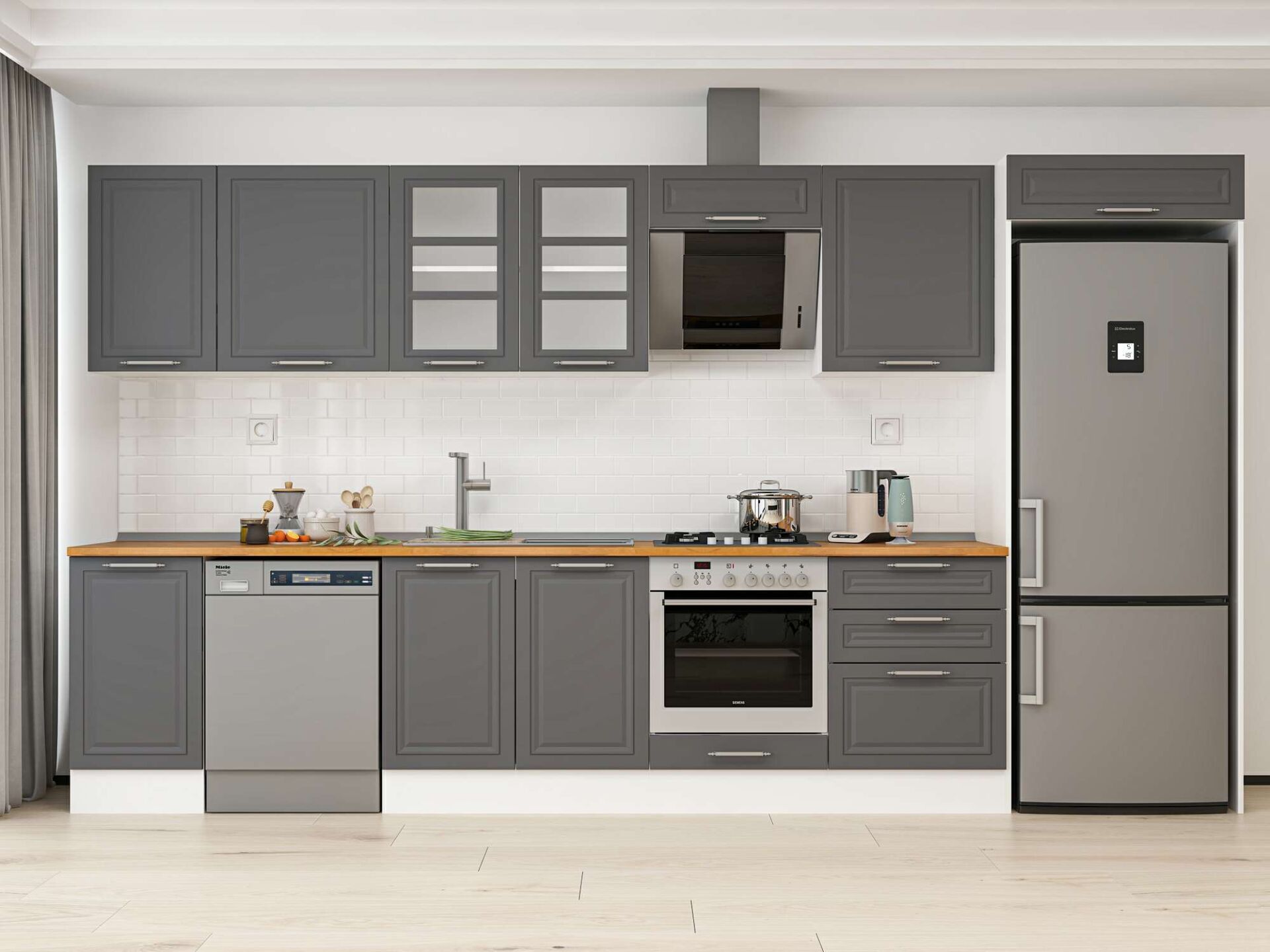 Alvinka 385X222 Cm Klasik Mebran Mutfak Dolabı Mb-E80S45S60-3