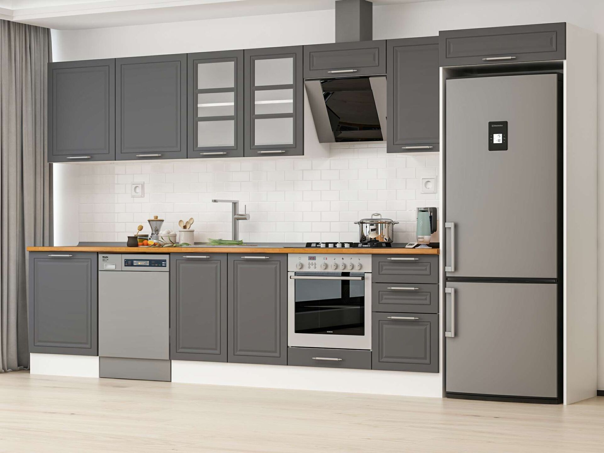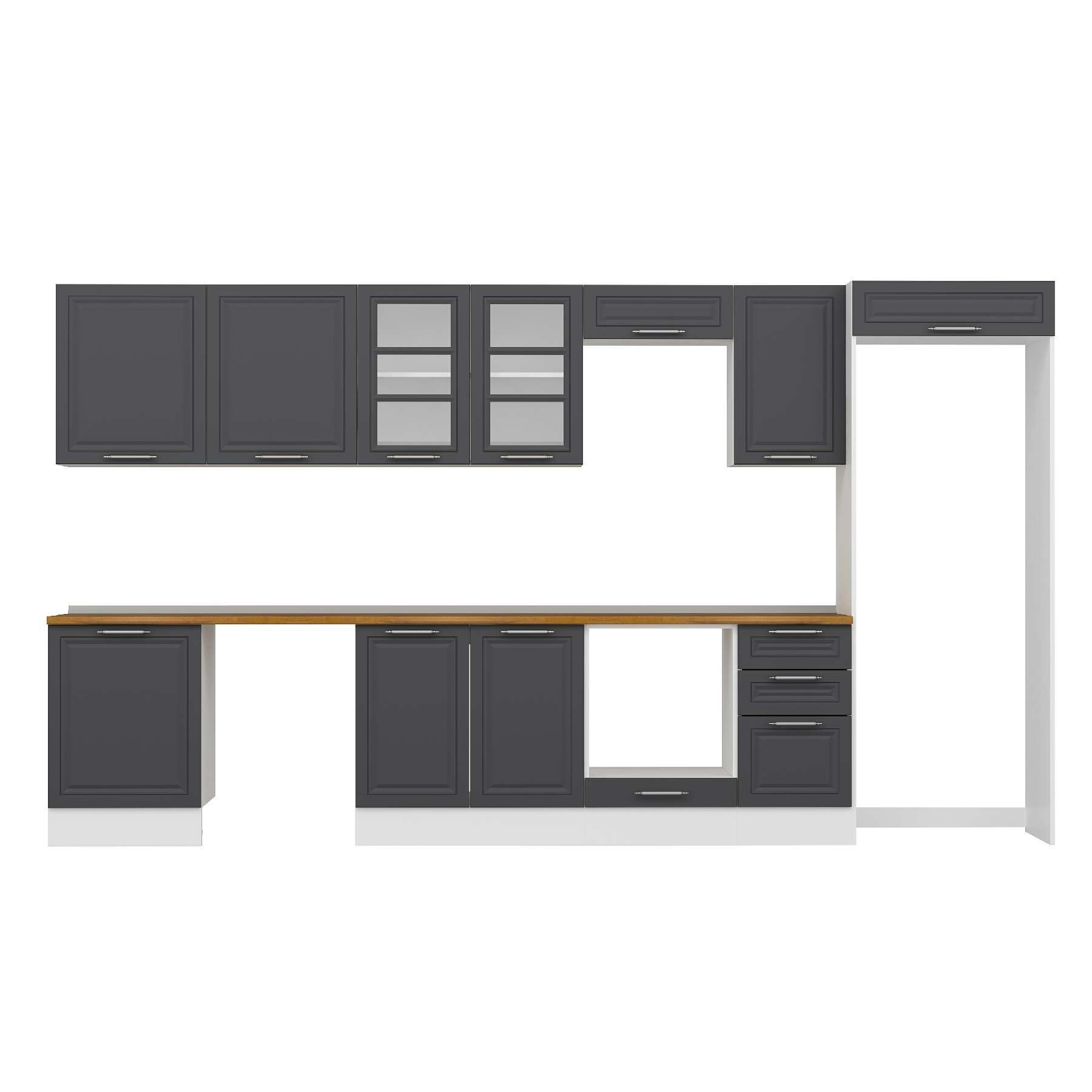 Alvinka 385X222 Cm Klasik Mebran Mutfak Dolabı Mb-E80S60S45-3 Mebran | Antrasit - Suntalam