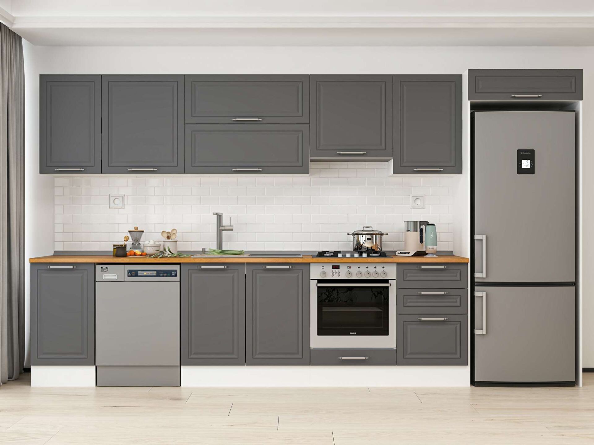 Alvinka 385X222 Cm Klasik Mebran Mutfak Dolabı Mb-E90S45S50-1