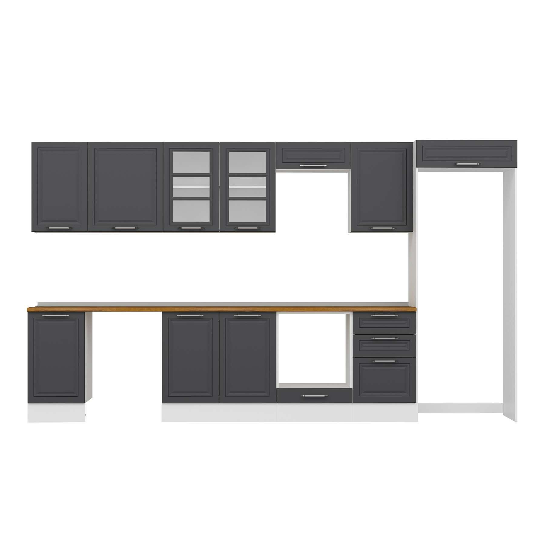 Alvinka 385X222 Cm Klasik Mebran Mutfak Dolabı Mb-E90S45S50-3 Mebran | Antrasit - Mdf