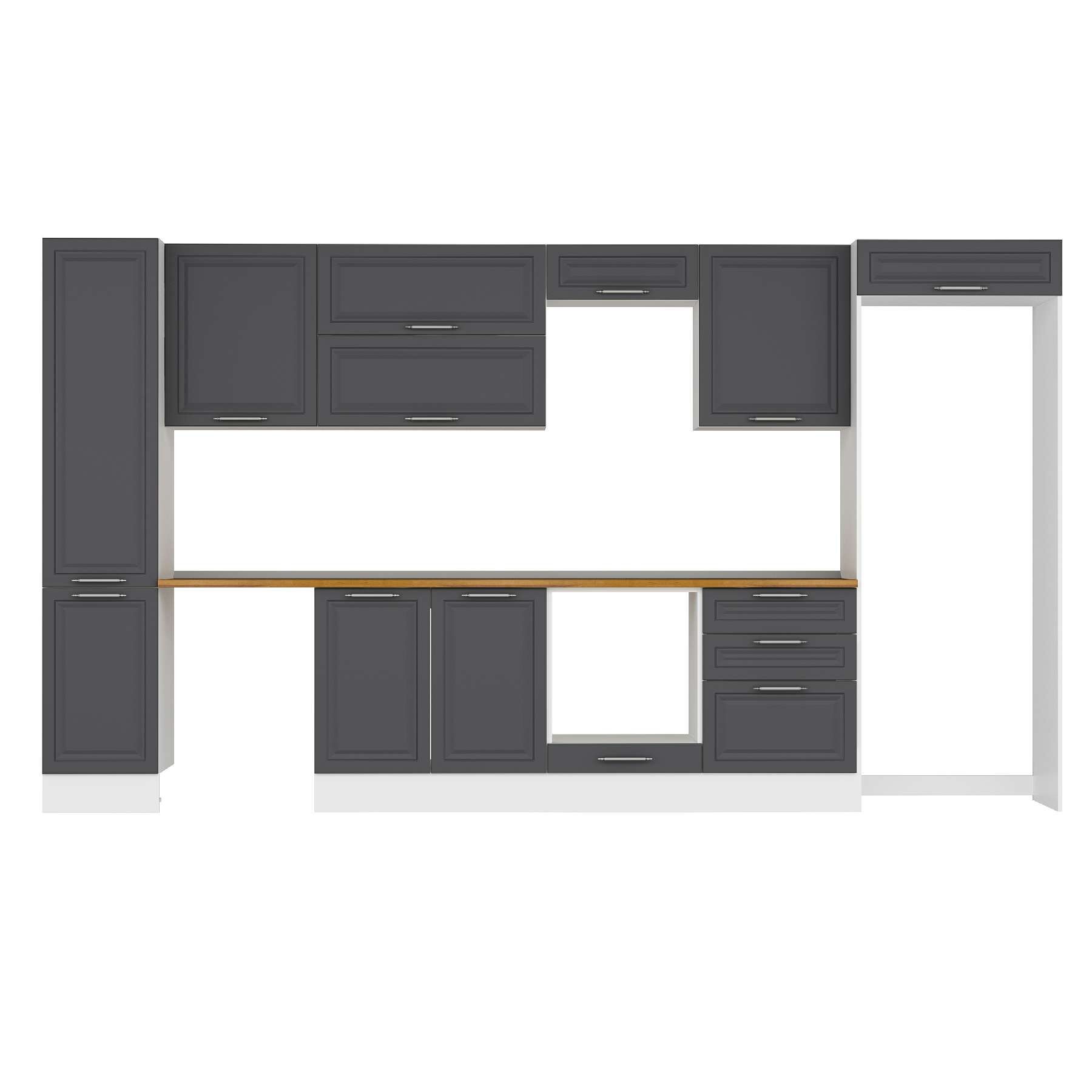 Alvinka 385X222 Cm Klasik Mebran Mutfak Dolabı Mbb-E80B45S60-2 Mebran | Antrasit - Mdf