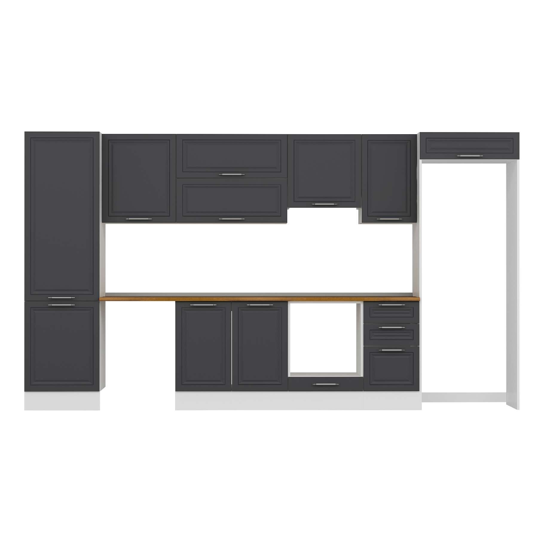 Alvinka 385X222 Cm Klasik Mebran Mutfak Dolabı Mbb-E80B60S45-1 Mebran | Antrasit - Suntalam
