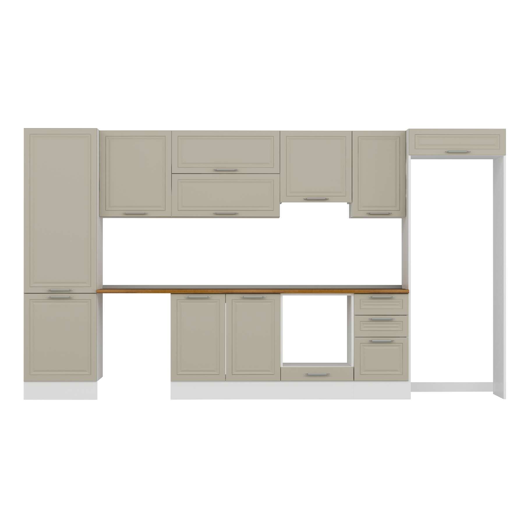 Alvinka 385X222 Cm Klasik Mebran Mutfak Dolabı Mbb-E80B60S45-1 Mebran | Kumtaşı - Mdf