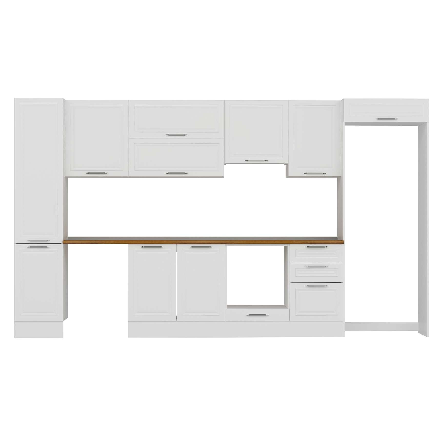 Alvinka 385X222 Cm Klasik Mebran Mutfak Dolabı Mbb-E90B45S50-1 Mebran | Beyaz - Mdf