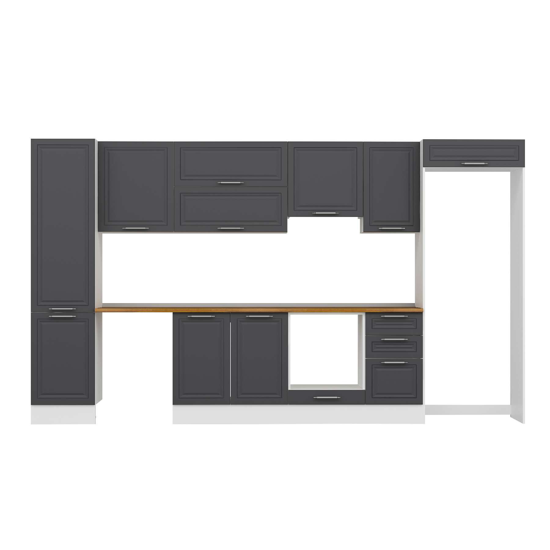 Alvinka 385X222 Cm Klasik Mebran Mutfak Dolabı Mbb-E90B50S45-1 Mebran | Antrasit - Mdf