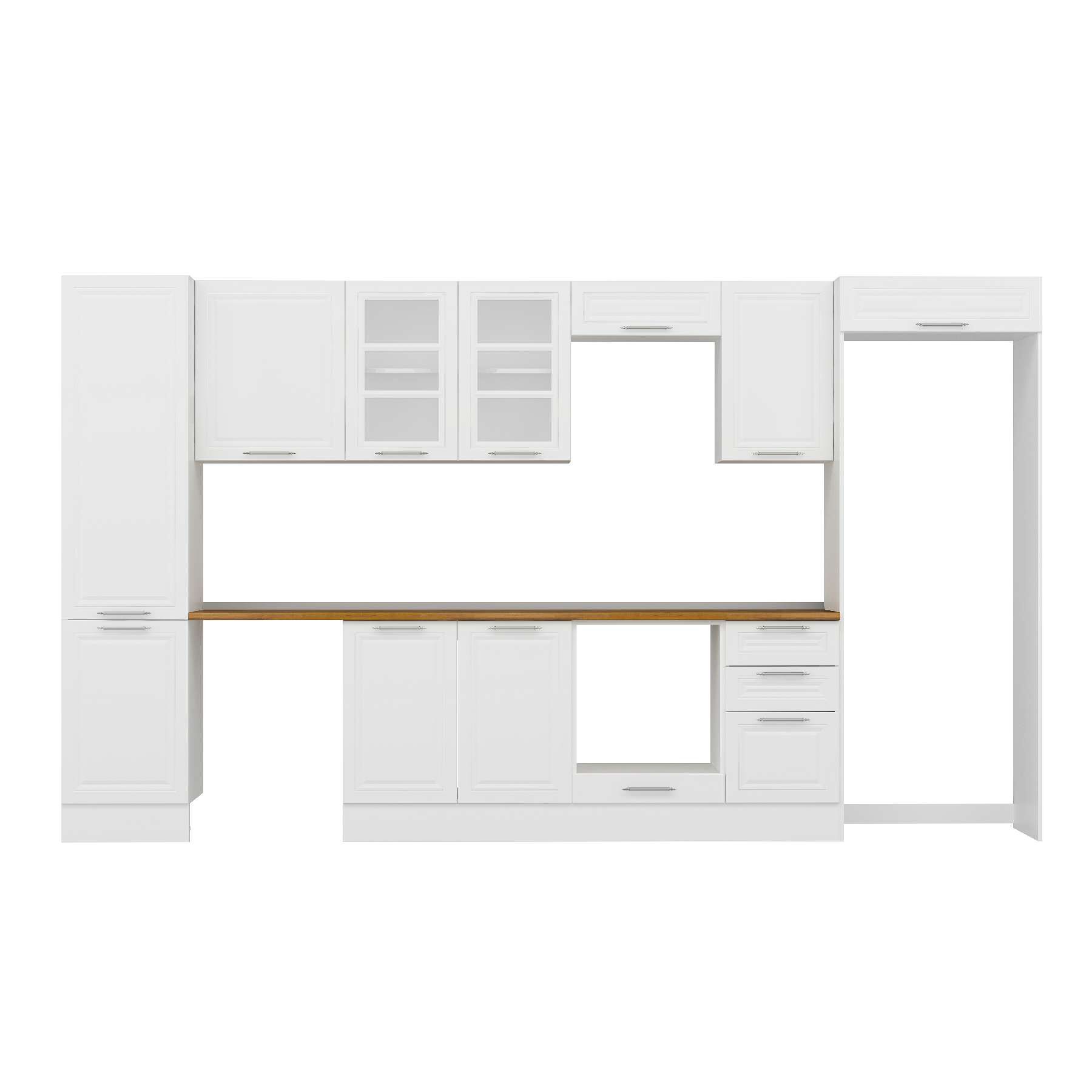 Alvinka 385X222 Cm Klasik Mebran Mutfak Dolabı Mbb-E90B50S45-3 Mebran | Beyaz - Suntalam