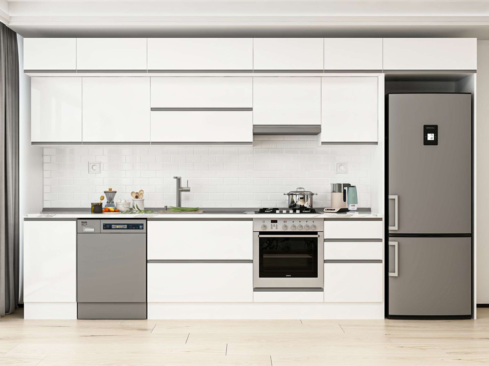 Alvinka 385X240 Cm High Gloss Mutfak Dolabı Mb-E90S45S50-1 High Gloss | Beyaz - Mdf