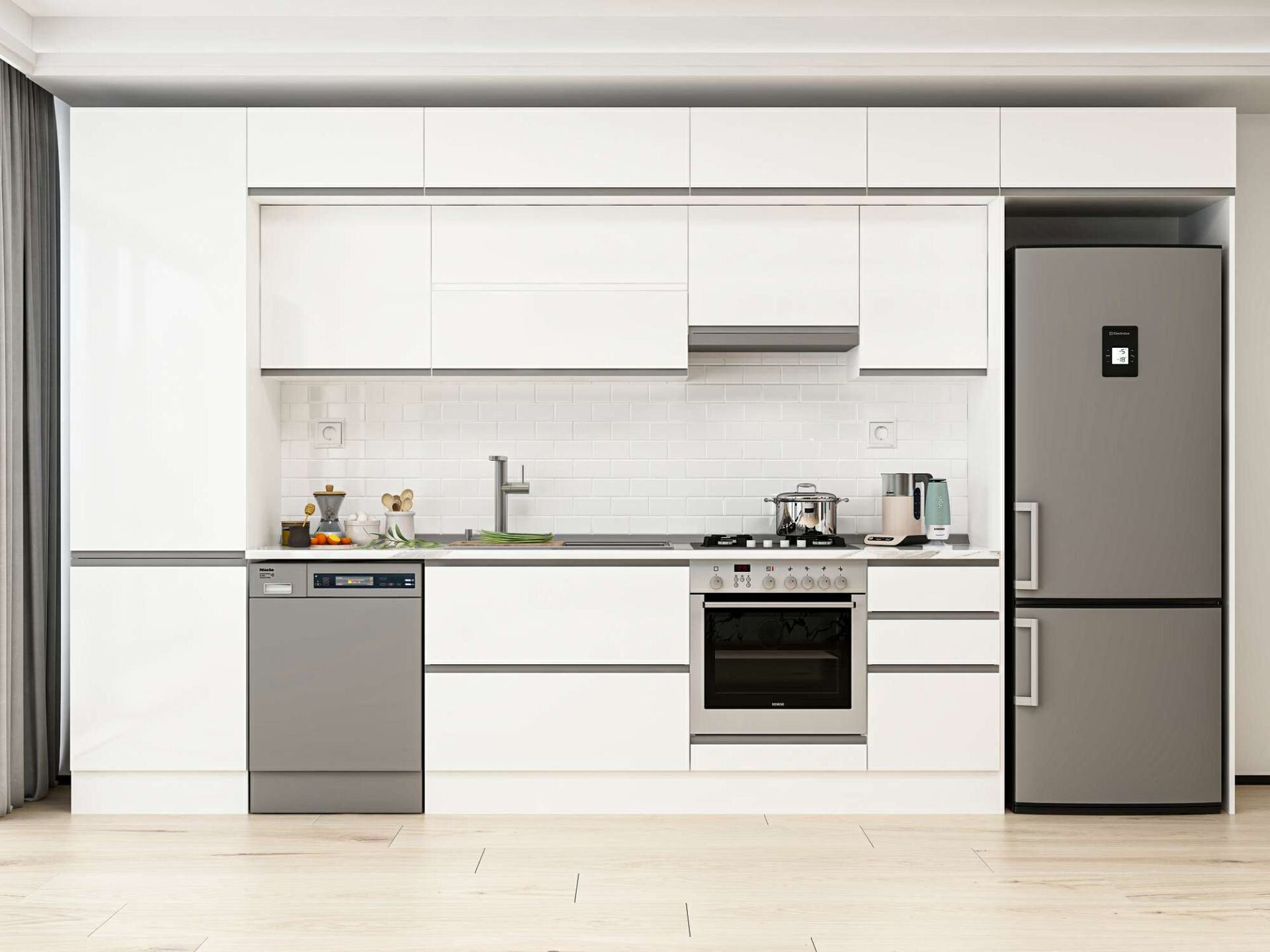 Alvinka 385X240 Cm High Gloss Mutfak Dolabı Mbb-E80B60S45-1 High Gloss | Beyaz - Mdf