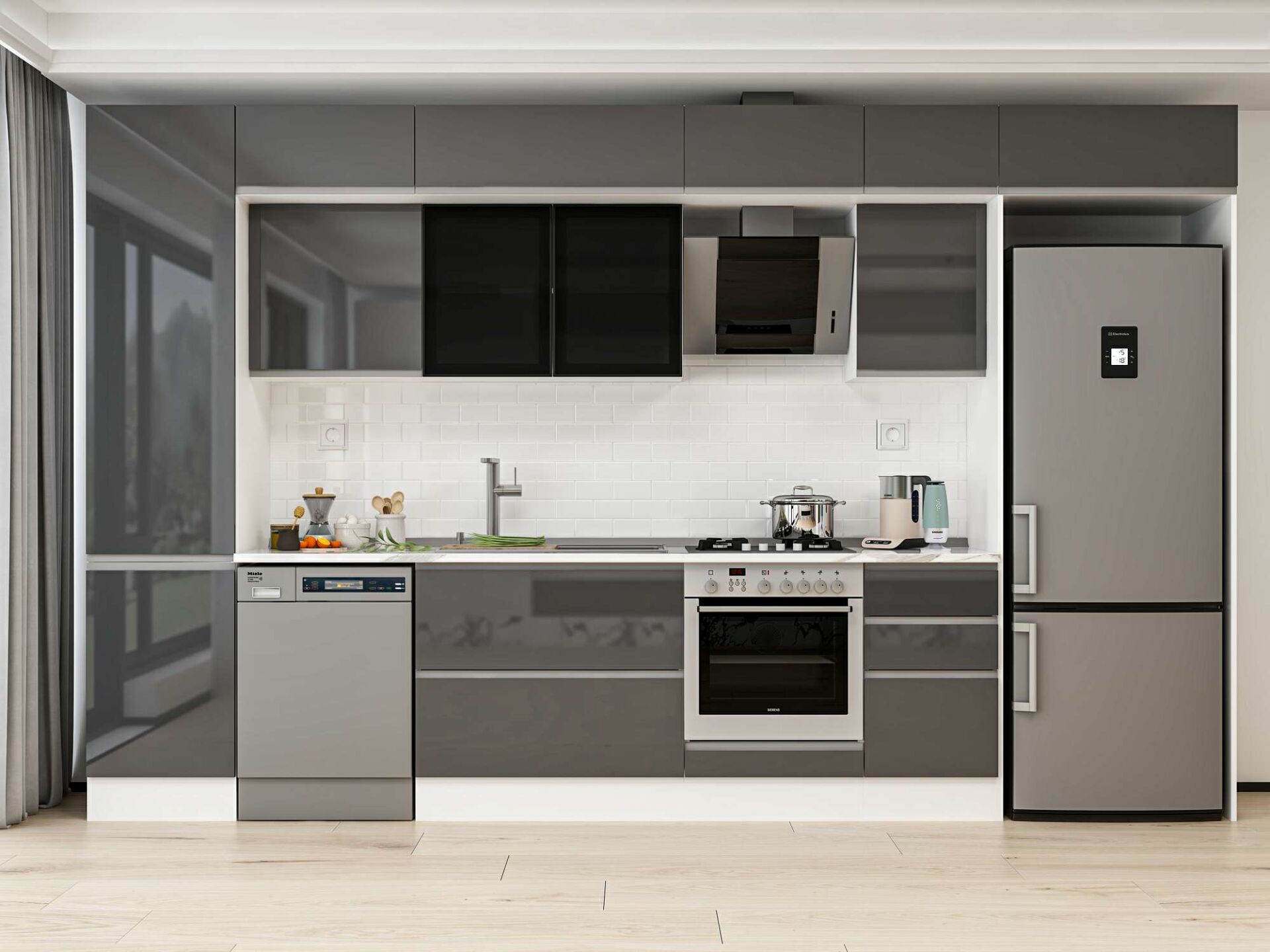 Alvinka 385X240 Cm High Gloss Mutfak Dolabı Mbb-E90B50S45-3