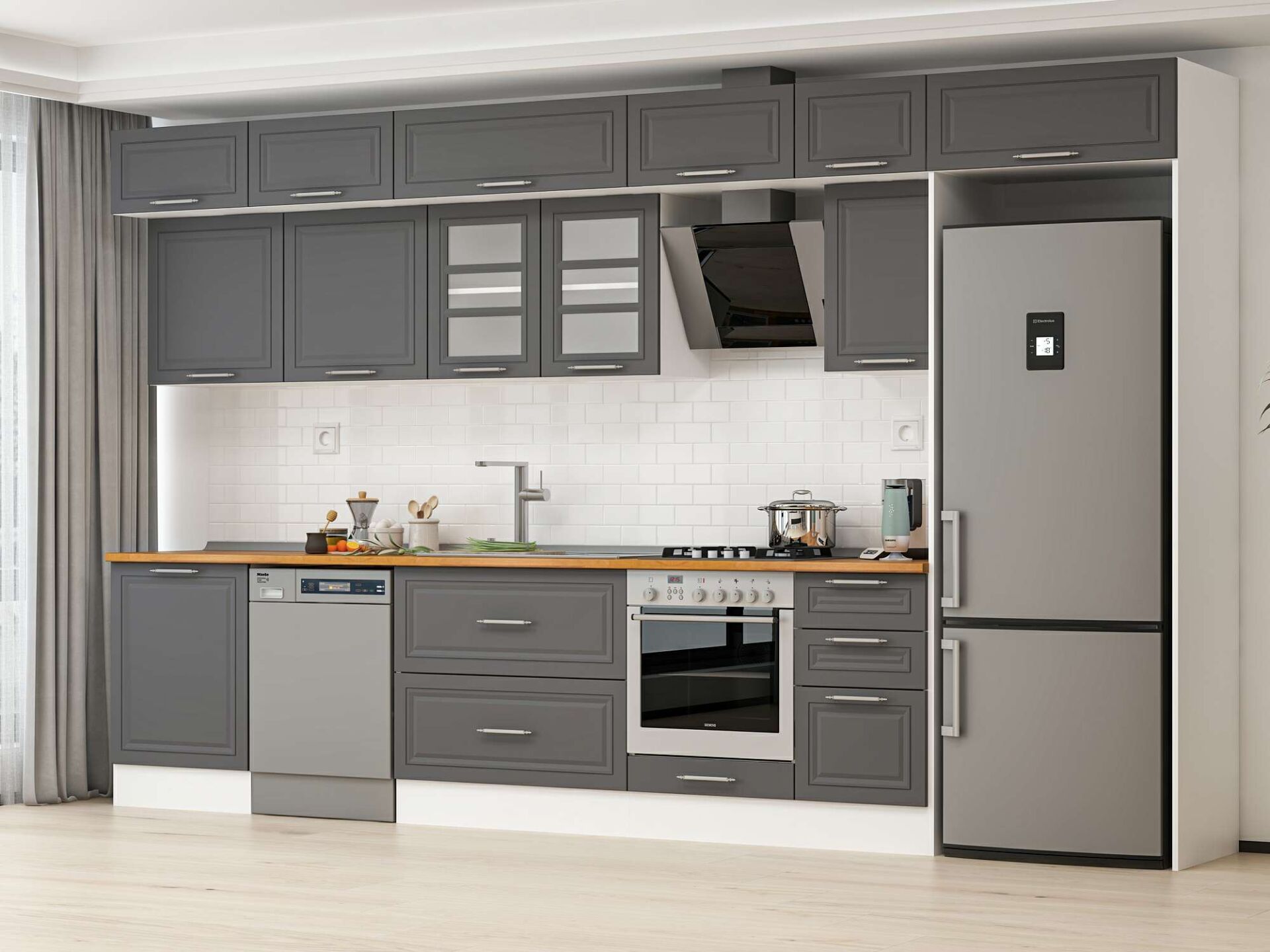 Alvinka 385X240 Cm Klasik Mebran Mutfak Dolabı Mb-E80S60S45-3 Mebran | Antrasit - Suntalam