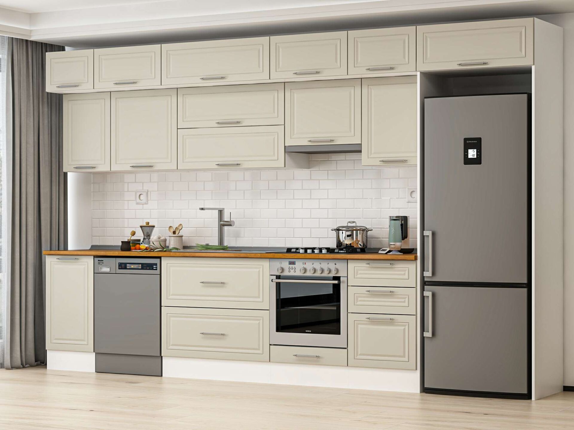 Alvinka 385X240 Cm Klasik Mebran Mutfak Dolabı Mb-E90S45S50-1
