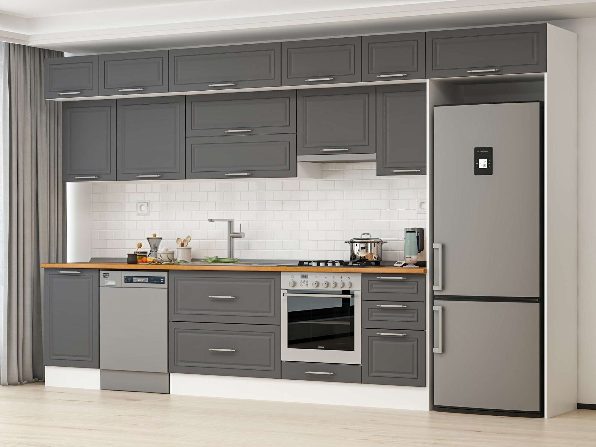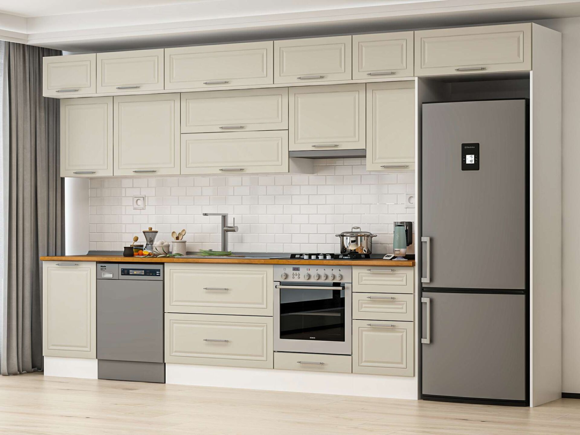 Alvinka 385X240 Cm Klasik Mebran Mutfak Dolabı Mb-E90S50S45-1