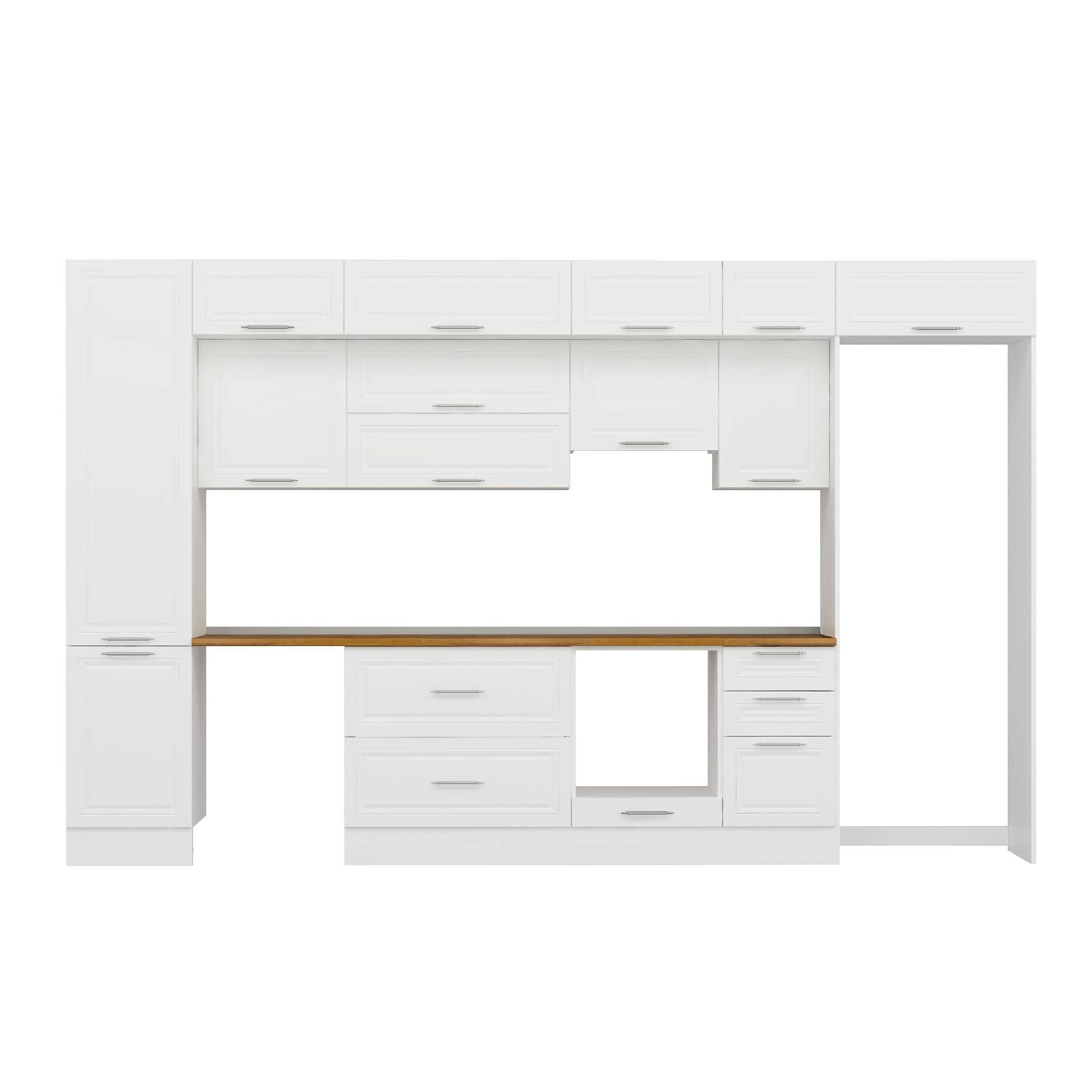 Alvinka 385X240 Cm Klasik Mebran Mutfak Dolabı Mbb-E90B50S45-1 Mebran | Beyaz - Mdf