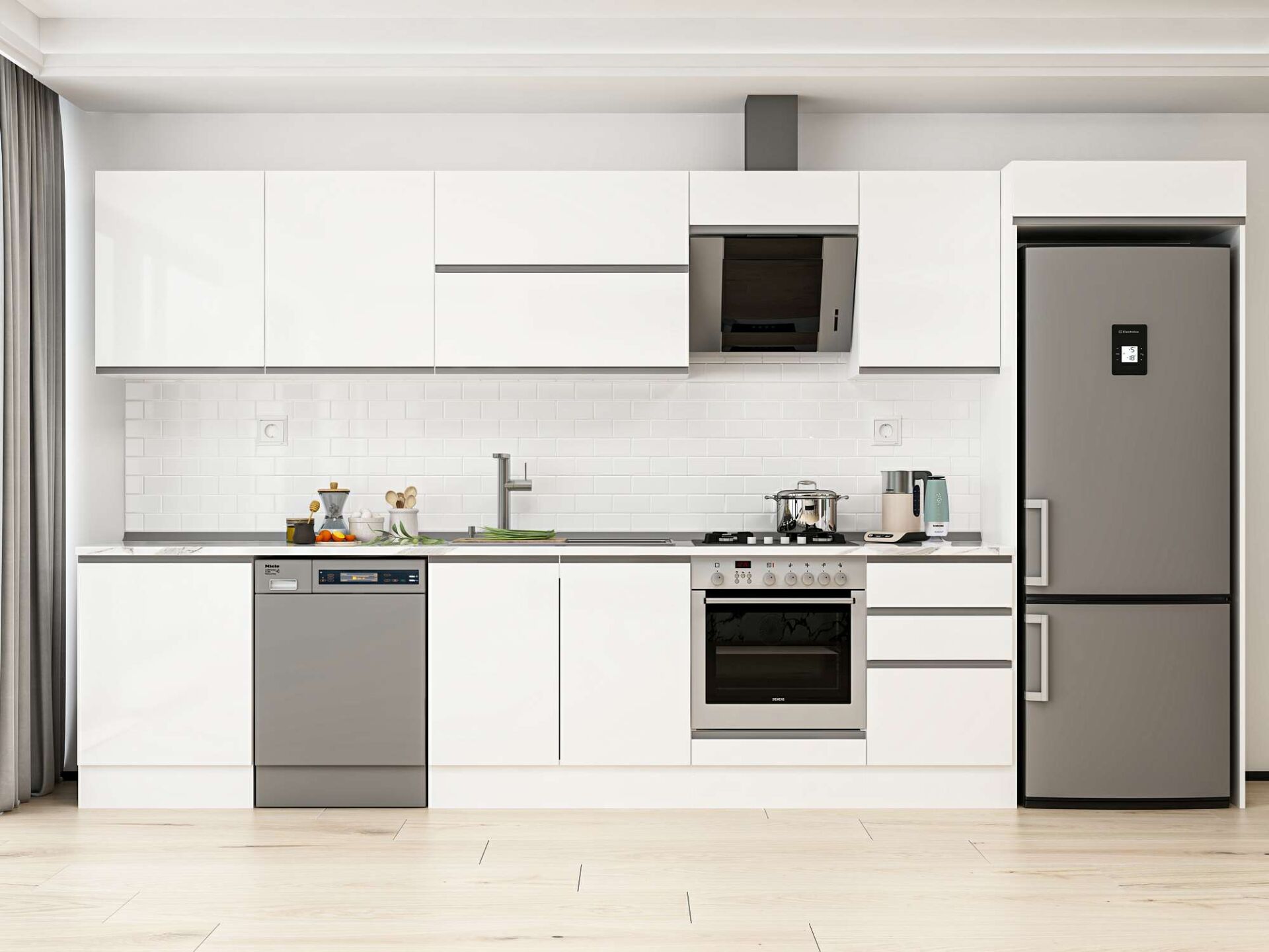 Alvinka 390X222 Cm High Gloss Mutfak Dolabı Mb-E80S60S50-2 High Gloss | Beyaz - Mdf
