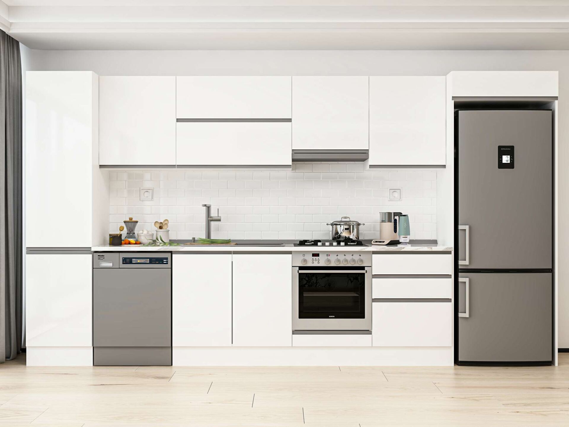 Alvinka 390X222 Cm High Gloss Mutfak Dolabı Mbb-E80B50S60-1 High Gloss | Beyaz - Mdf