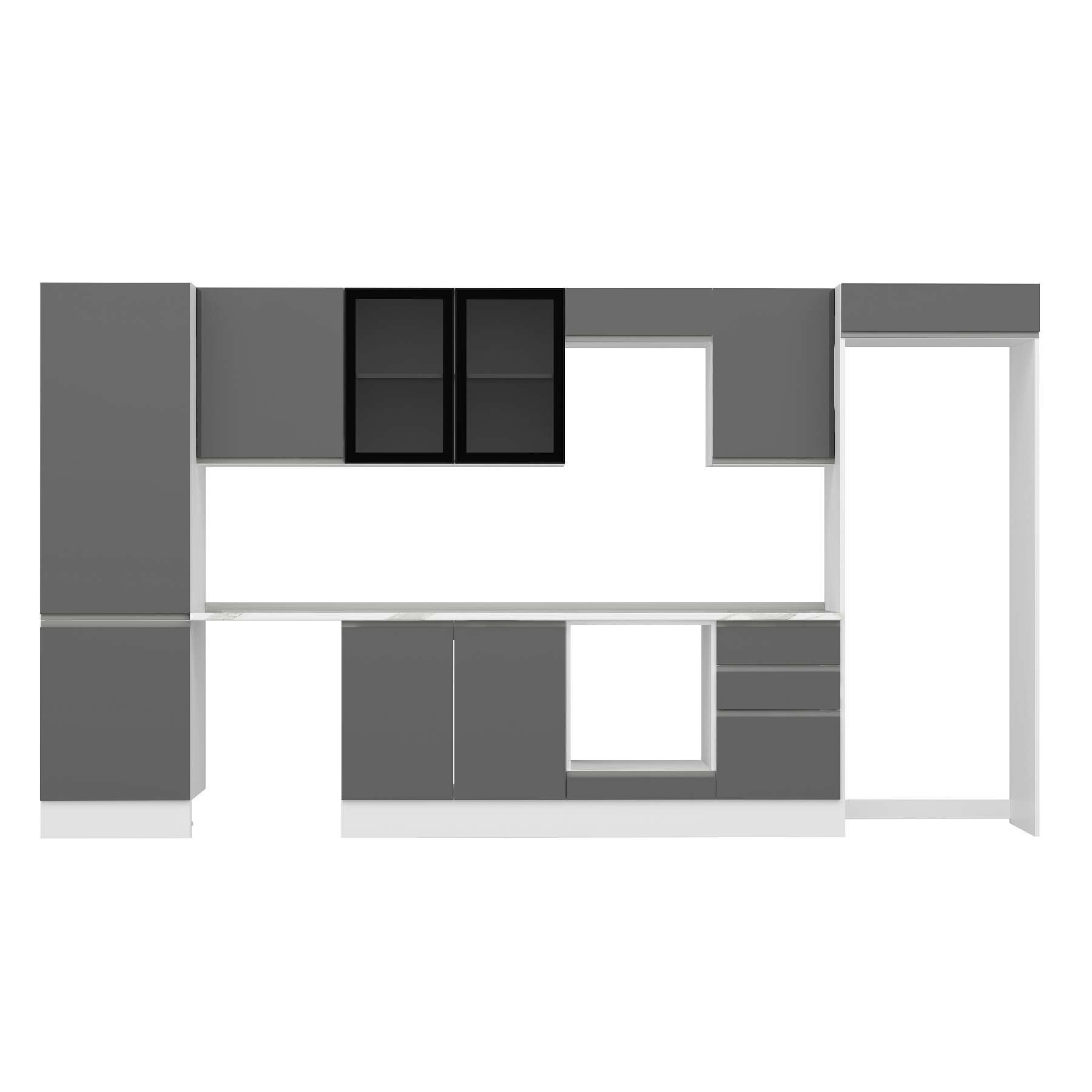 Alvinka 390X222 Cm High Gloss Mutfak Dolabı Mbb-E80B60S50-3 High Gloss | Antrasit - Mdf