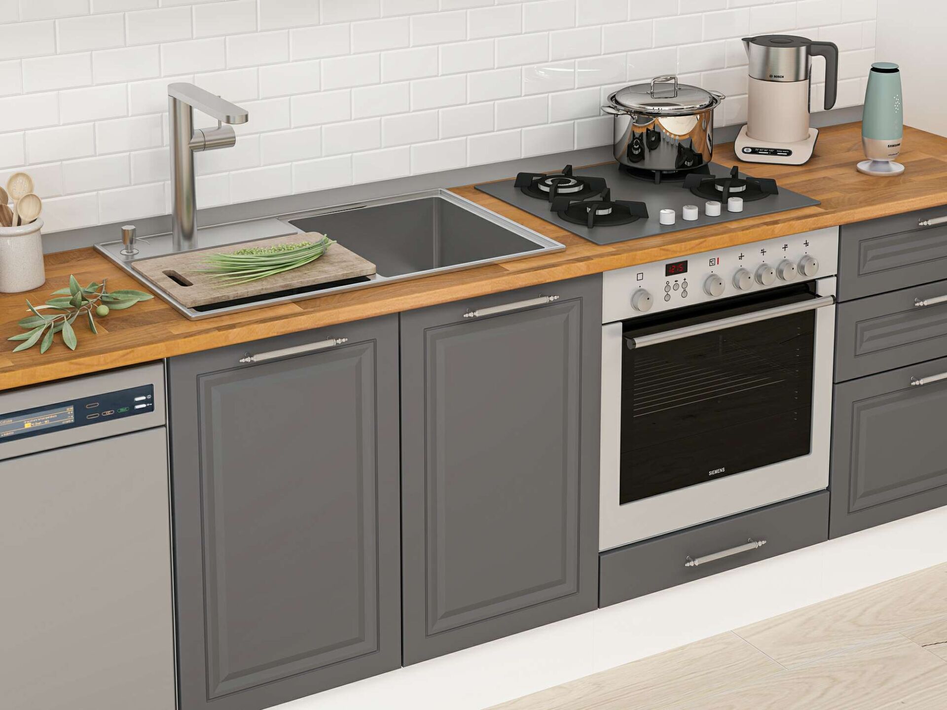 Alvinka 390X222 Cm Klasik Mebran Mutfak Dolabı Mb-E80S50S60-1 Mebran | Antrasit - Suntalam
