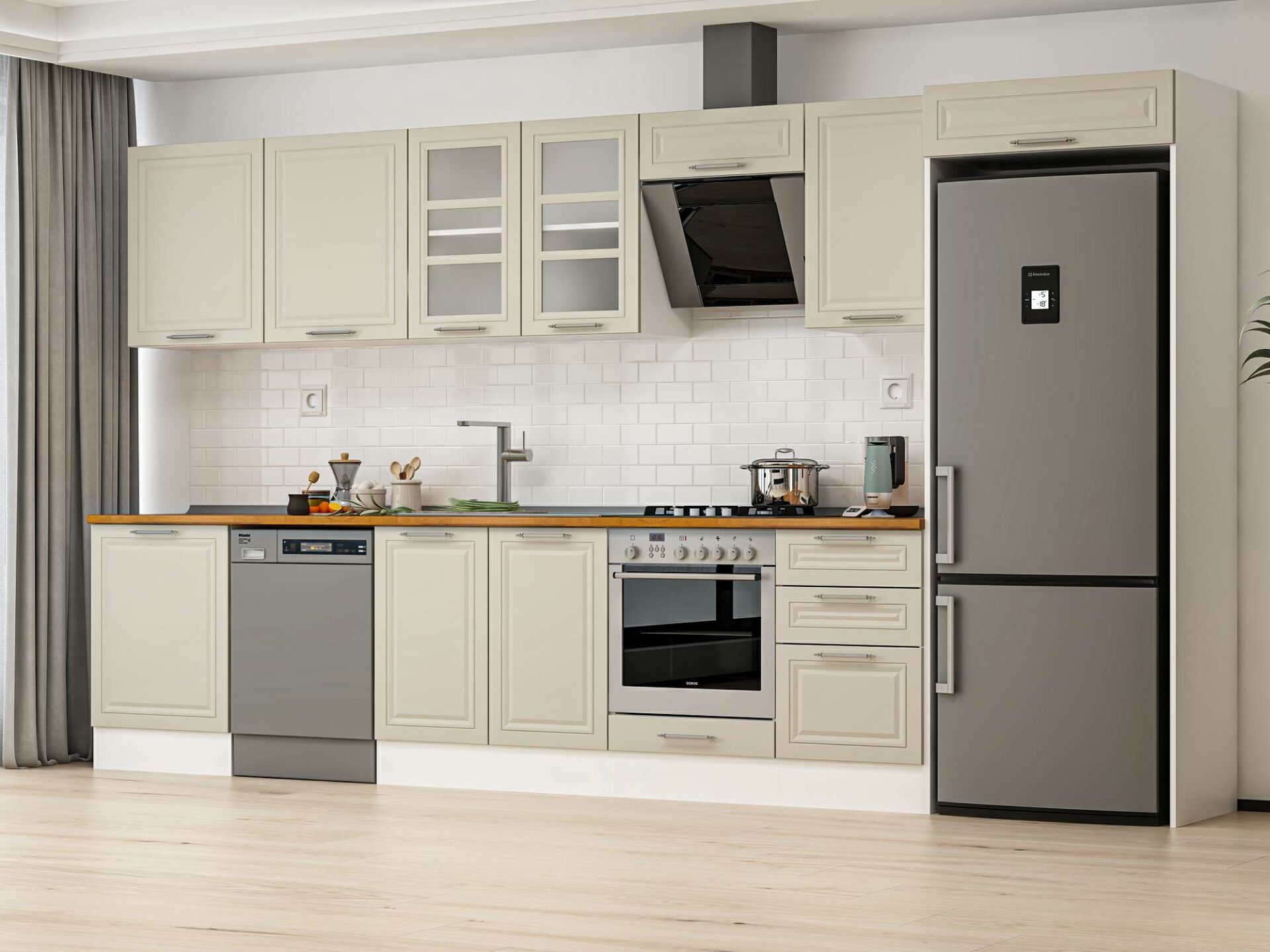 Alvinka 390X222 Cm Klasik Mebran Mutfak Dolabı Mb-E80S60S50-3 Mebran | Kumtaşı - Suntalam
