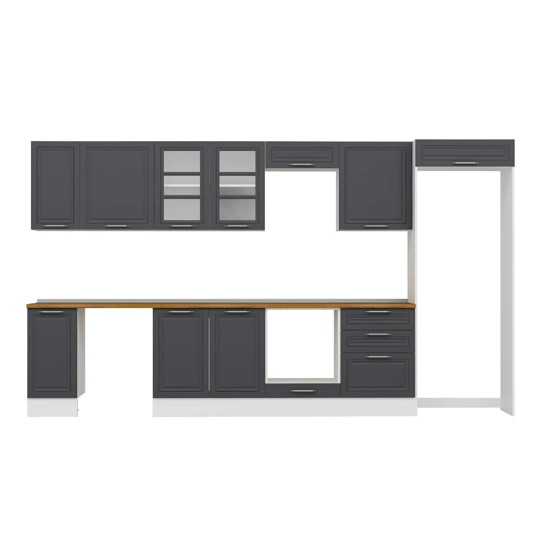 Alvinka 390X222 Cm Klasik Mebran Mutfak Dolabı Mb-E90S40S60-3 Mebran | Antrasit - Suntalam