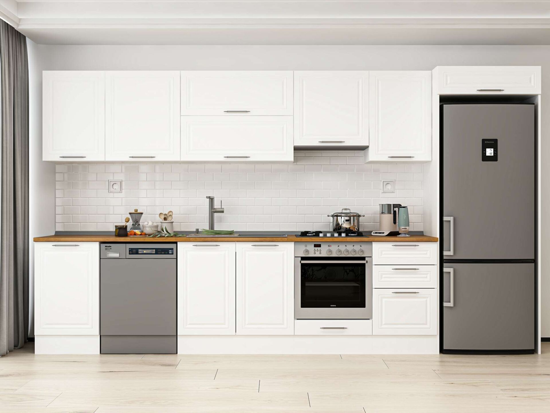 Alvinka 390X222 Cm Klasik Mebran Mutfak Dolabı Mb-E90S50S50-1 Mebran | Beyaz - Suntalam