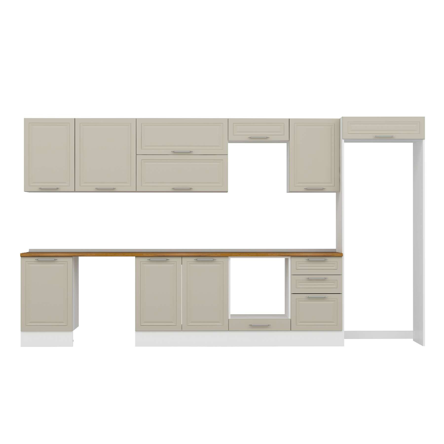 Alvinka 390X222 Cm Klasik Mebran Mutfak Dolabı Mb-E90S50S50-2 Mebran | Kumtaşı - Suntalam