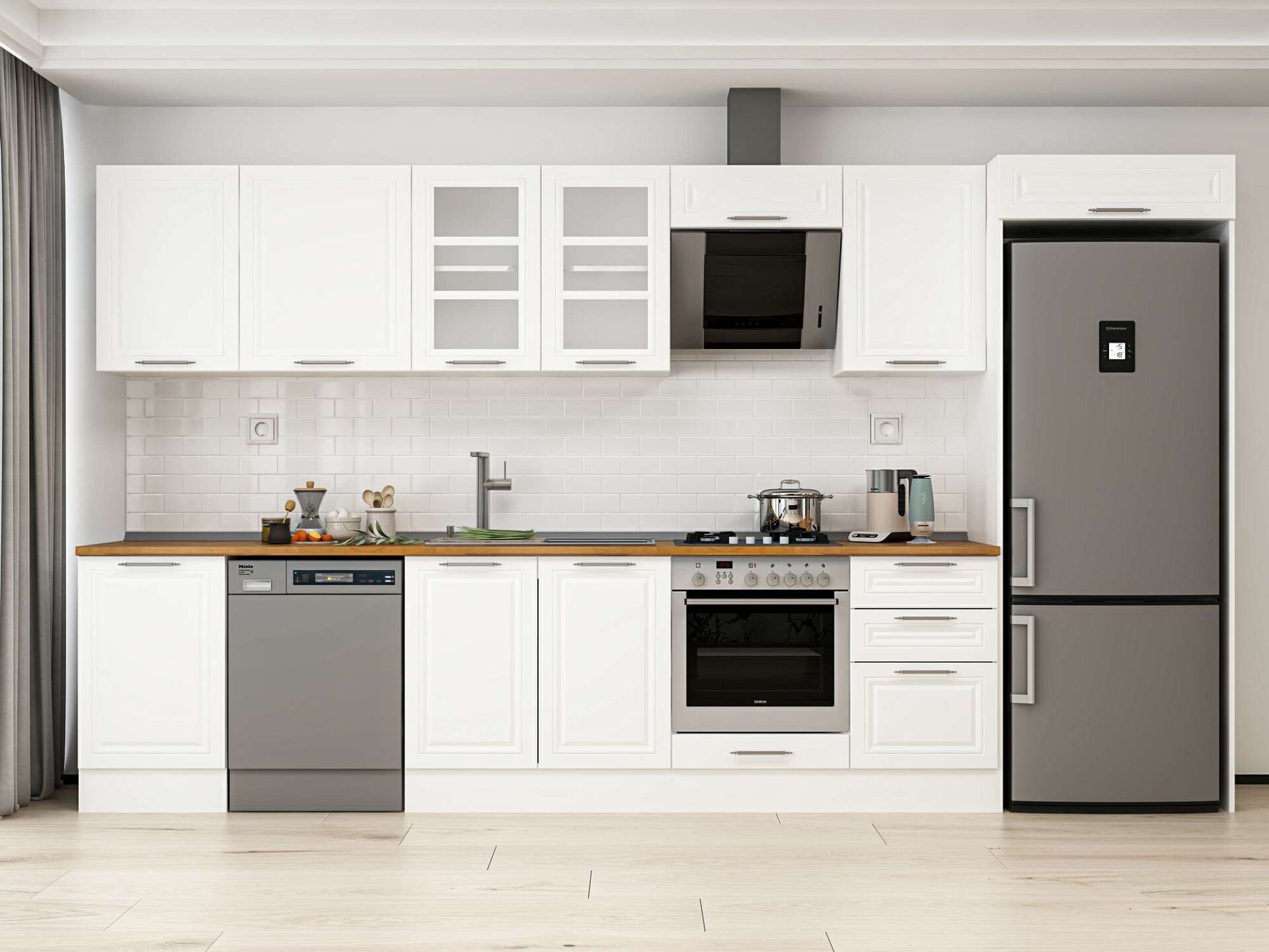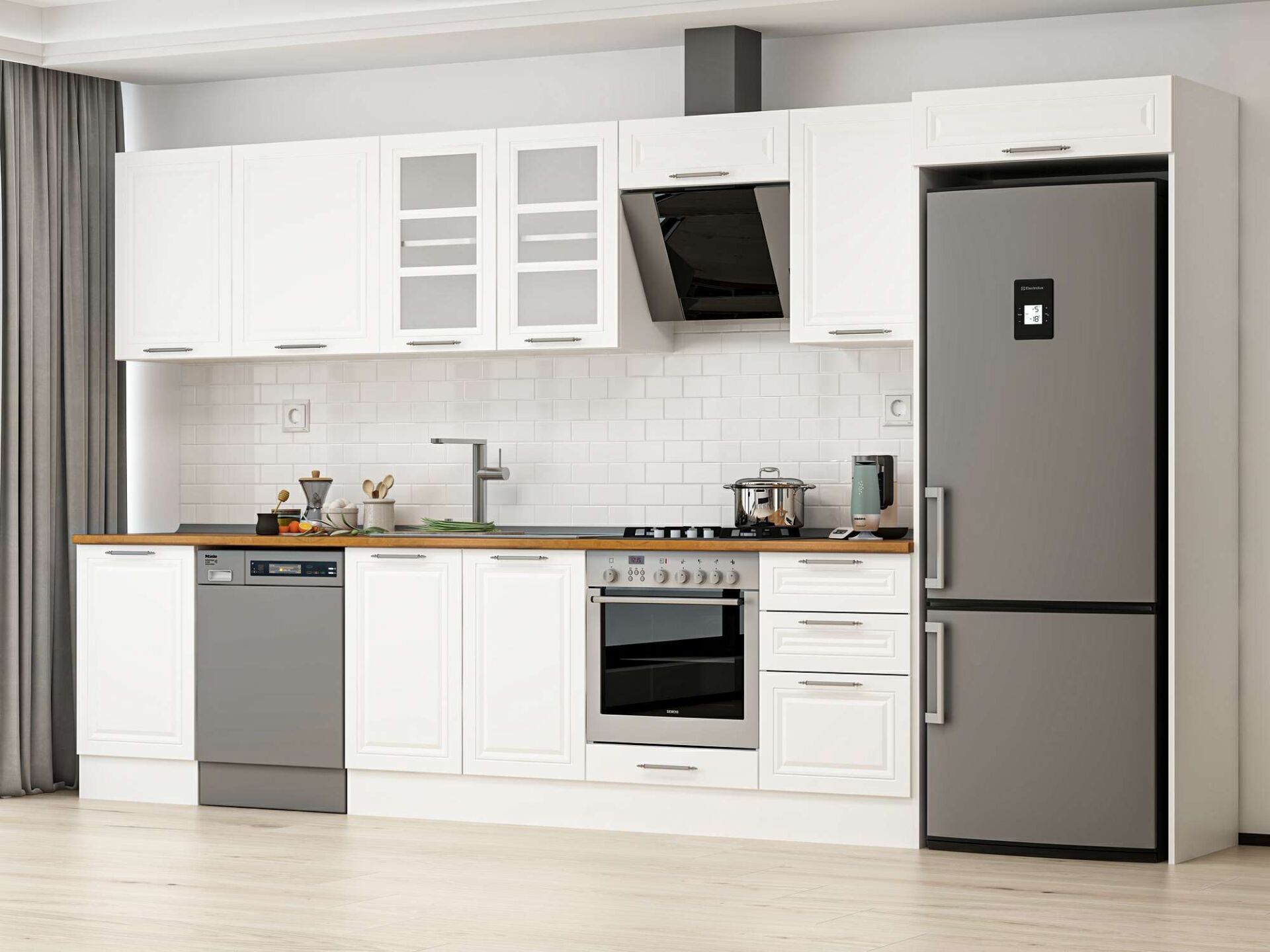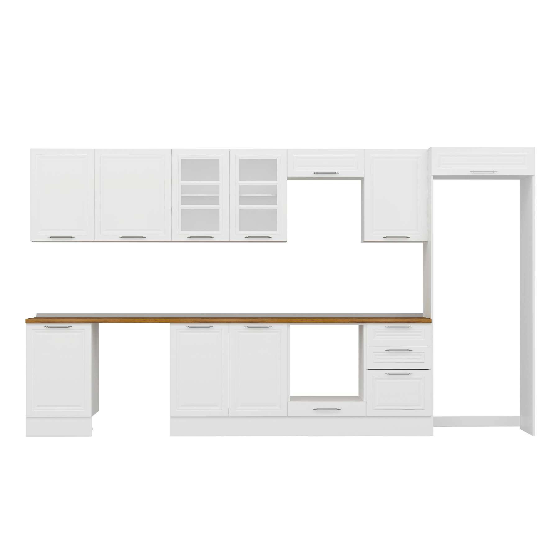 Alvinka 390X222 Cm Klasik Mebran Mutfak Dolabı Mb-E90S50S50-3 Mebran | Beyaz - Mdf