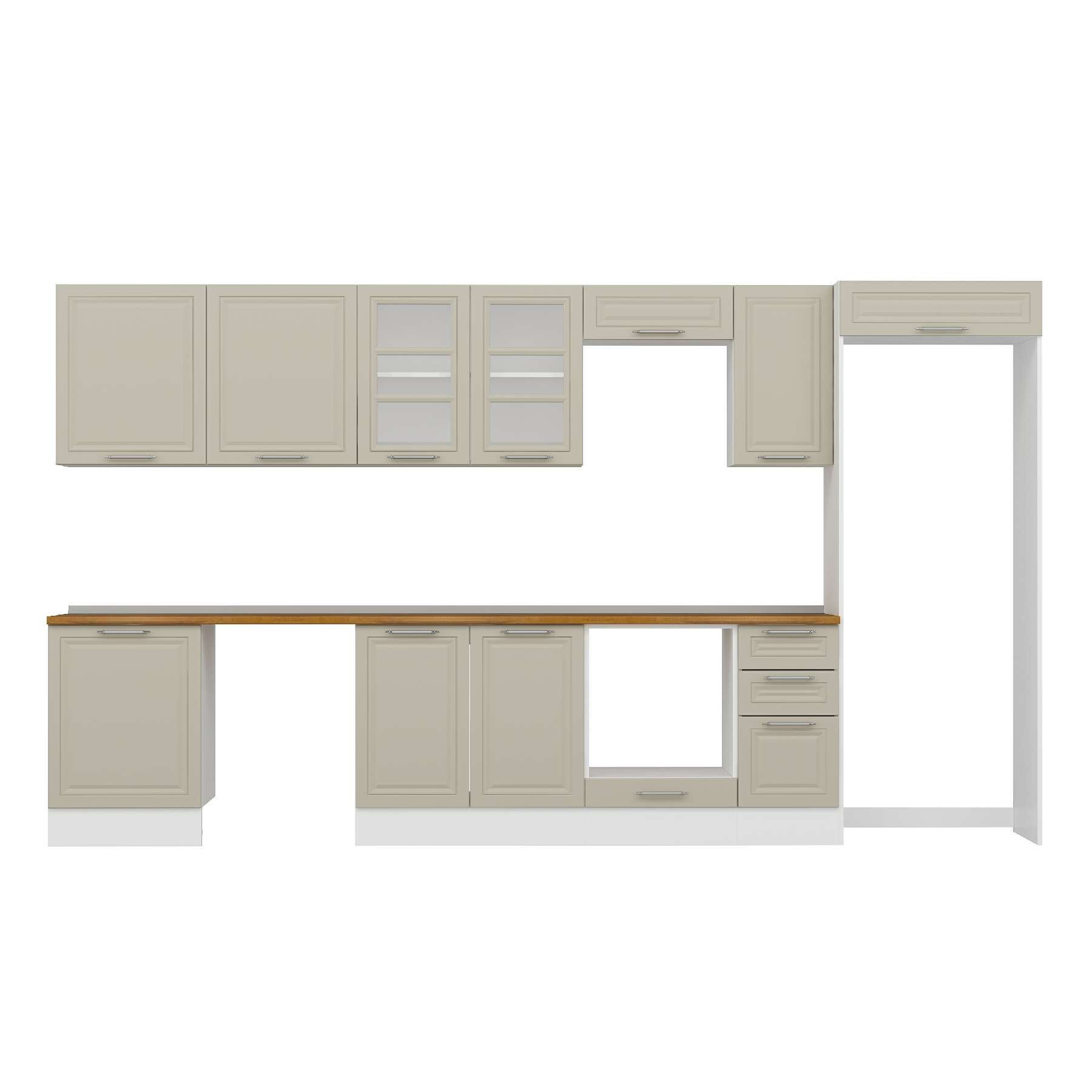 Alvinka 390X222 Cm Klasik Mebran Mutfak Dolabı Mb-E90S60S40-3 Mebran | Kumtaşı - Suntalam