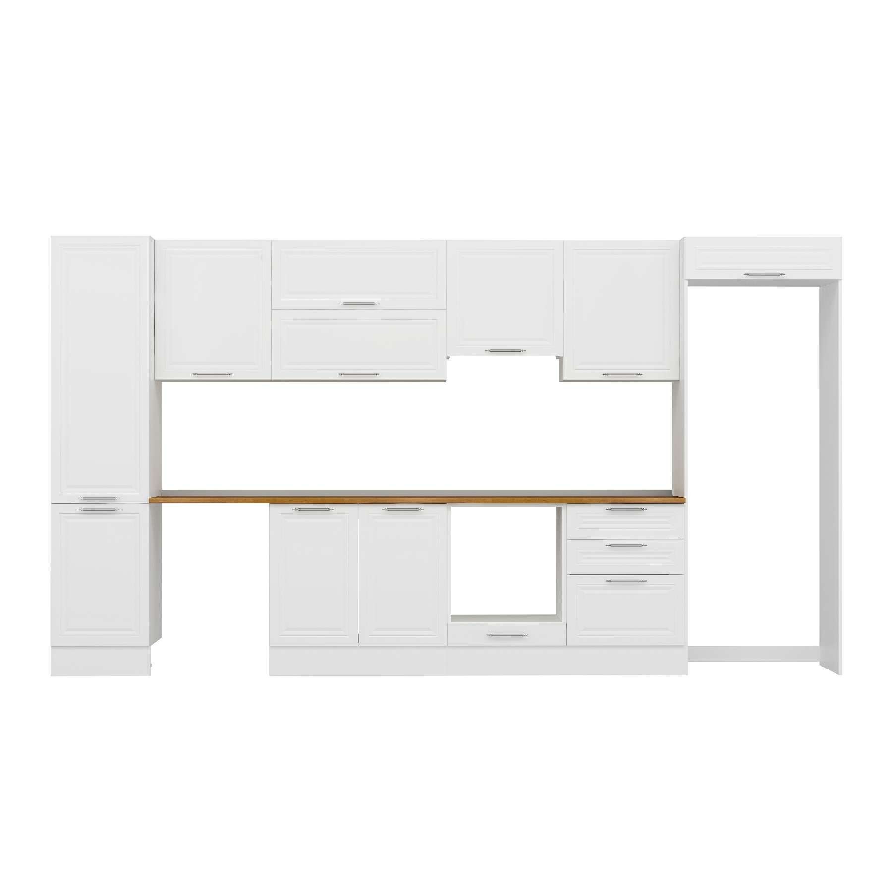 Alvinka 390X222 Cm Klasik Mebran Mutfak Dolabı Mbb-E80B50S60-1 Mebran | Beyaz - Mdf