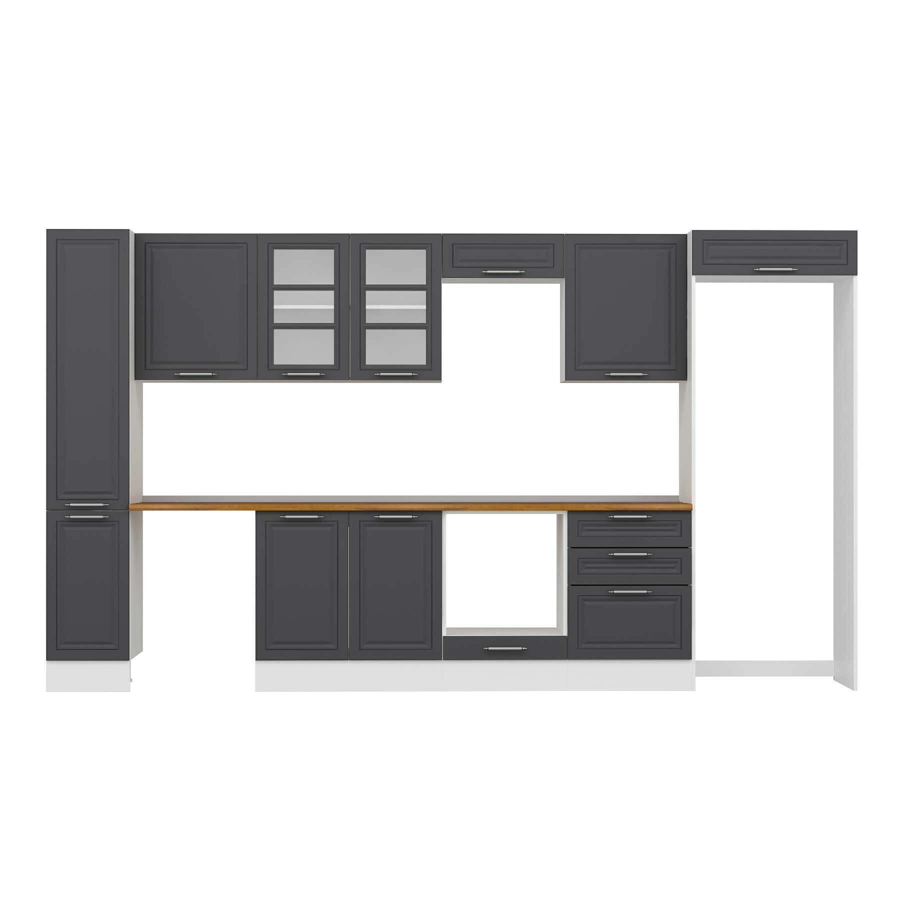 Alvinka 390X222 Cm Klasik Mebran Mutfak Dolabı Mbb-E90B40S60-3 Mebran | Antrasit - Suntalam