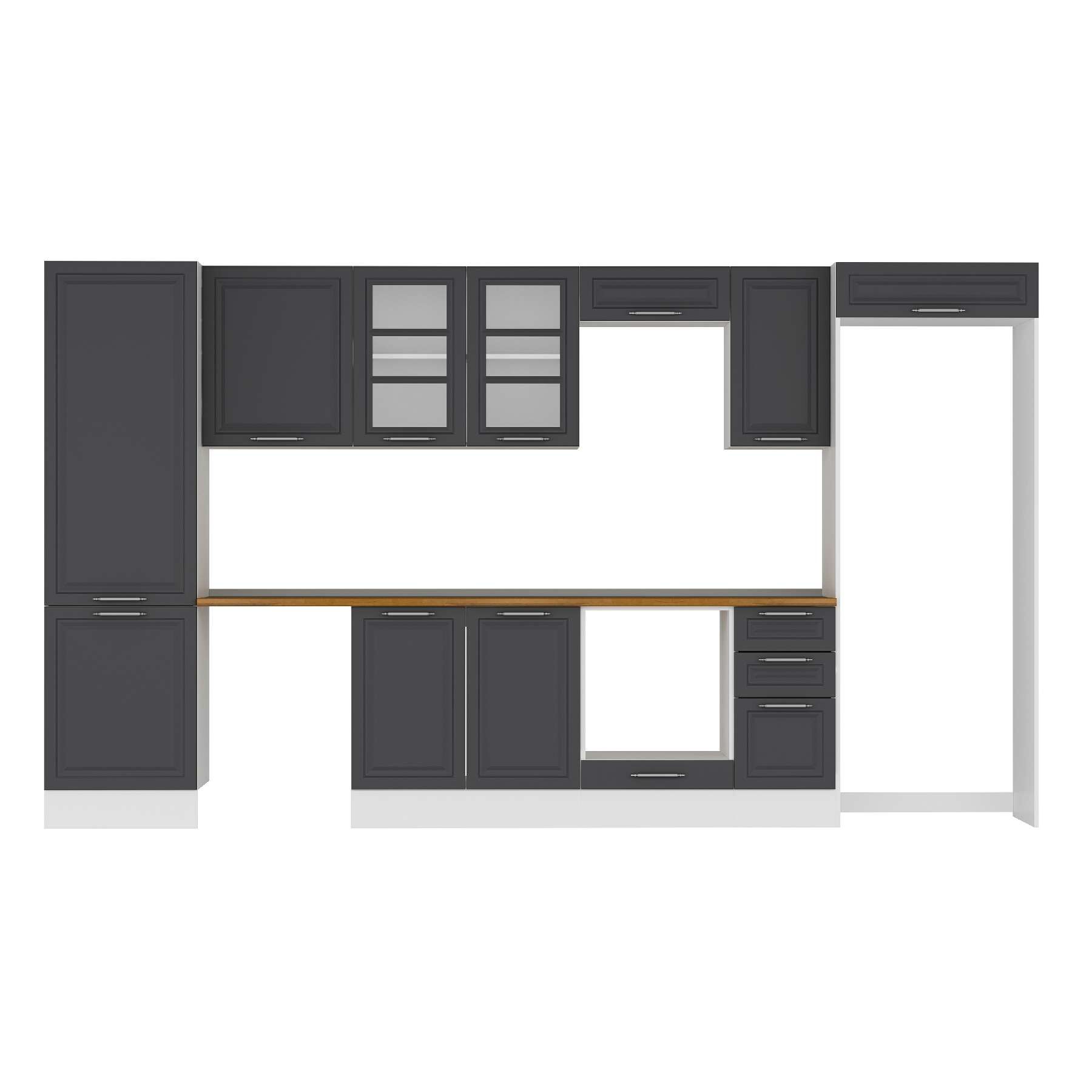 Alvinka 390X222 Cm Klasik Mebran Mutfak Dolabı Mbb-E90B60S40-3 Mebran | Antrasit - Mdf