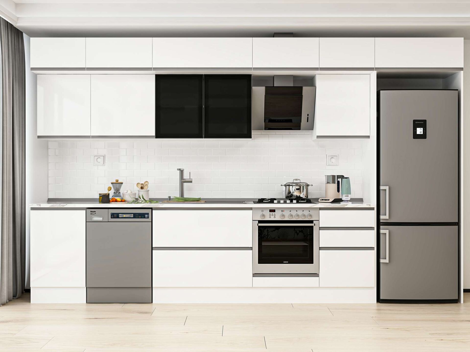 Alvinka 390X240 Cm High Gloss Mutfak Dolabı Mb-E90S50S50-3 High Gloss | Beyaz - Suntalam