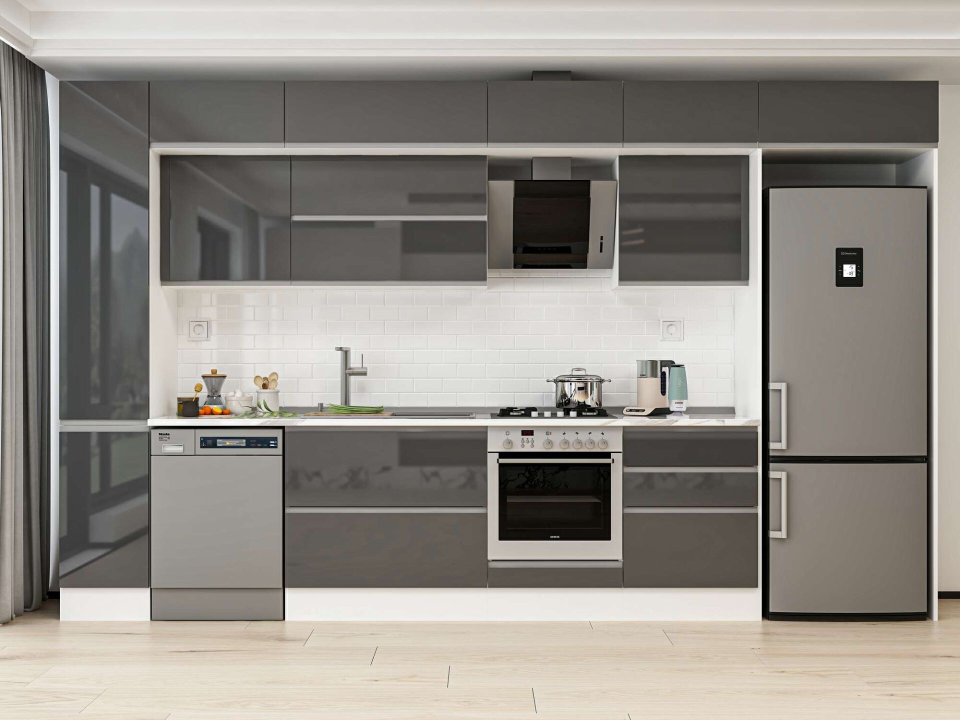 Alvinka 390X240 Cm High Gloss Mutfak Dolabı Mbb-E90B40S60-2 High Gloss | Antrasit - Mdf