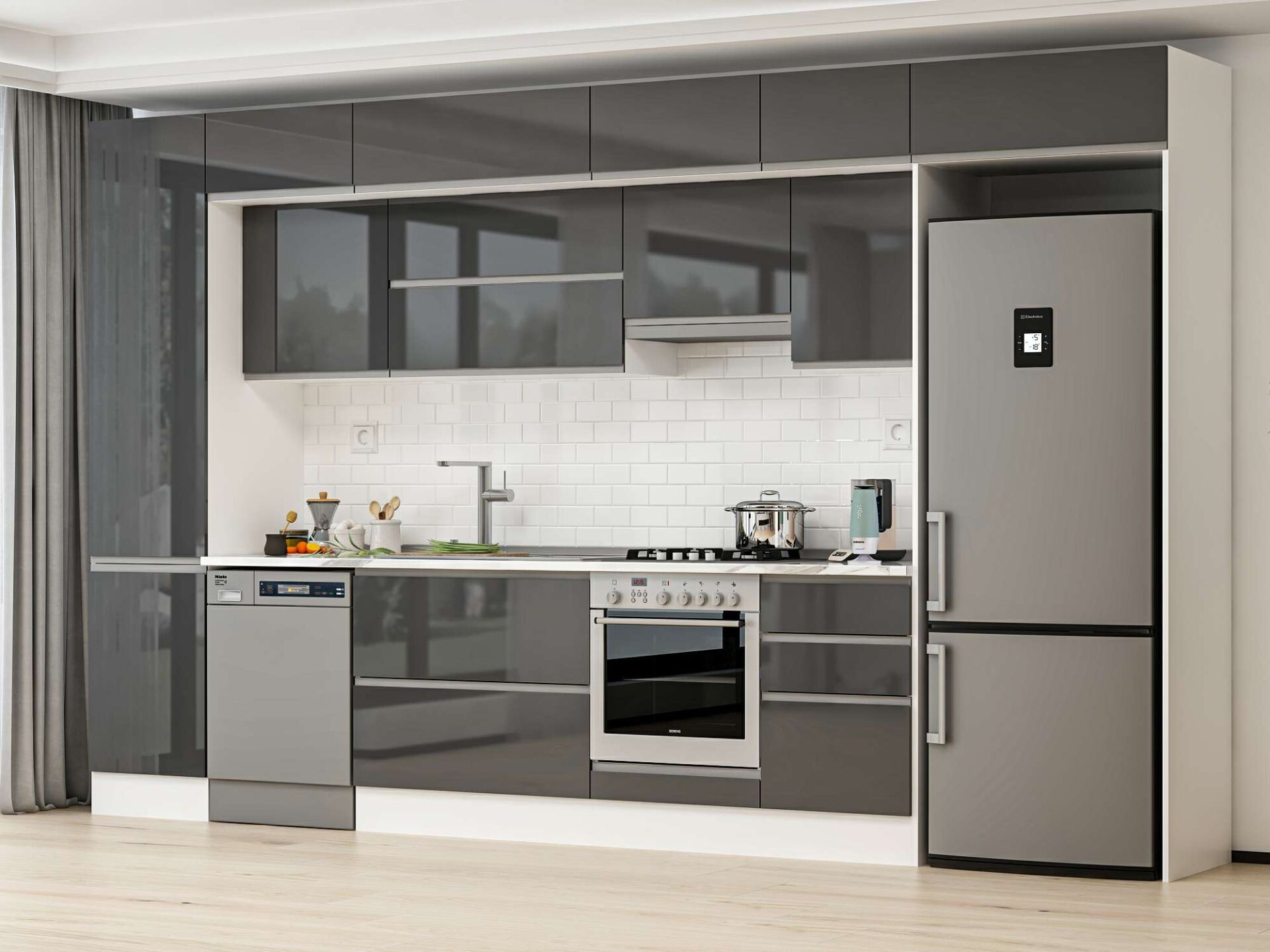 Alvinka 390X240 Cm High Gloss Mutfak Dolabı Mbb-E90B50S50-1
