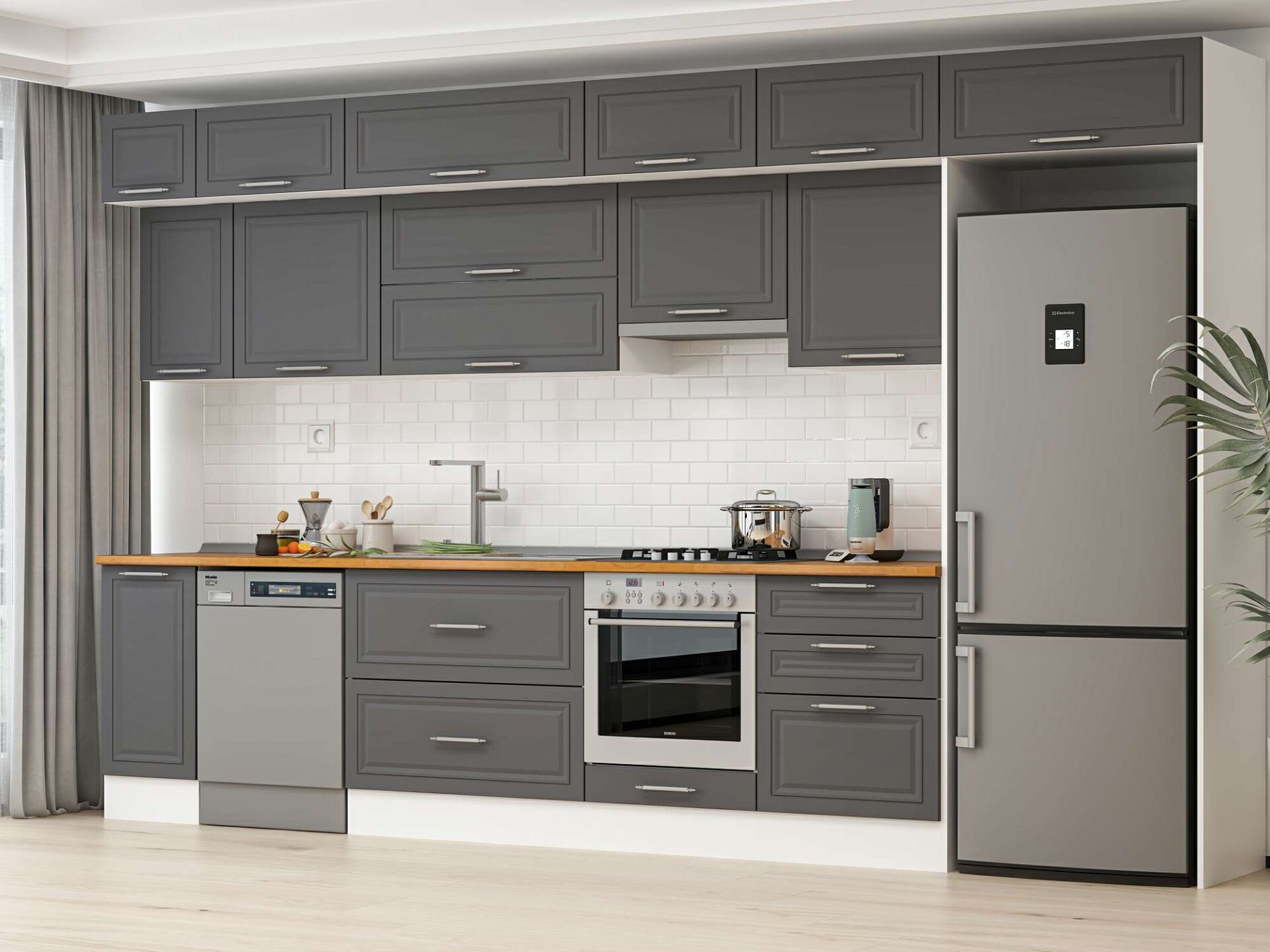 Alvinka 390X240 Cm Klasik Mebran Mutfak Dolabı Mb-E90S40S60-1
