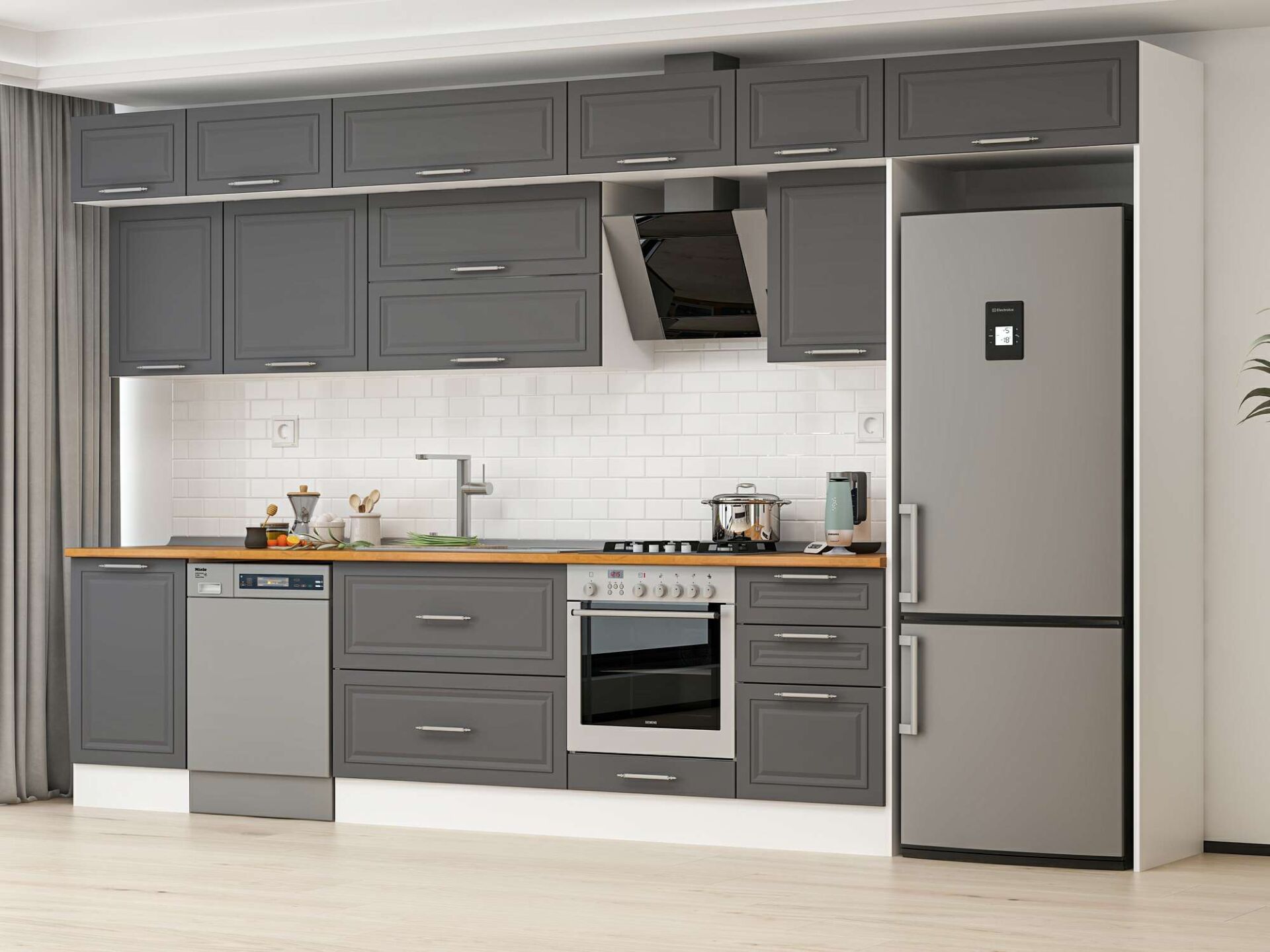 Alvinka 390X240 Cm Klasik Mebran Mutfak Dolabı Mb-E90S50S50-2