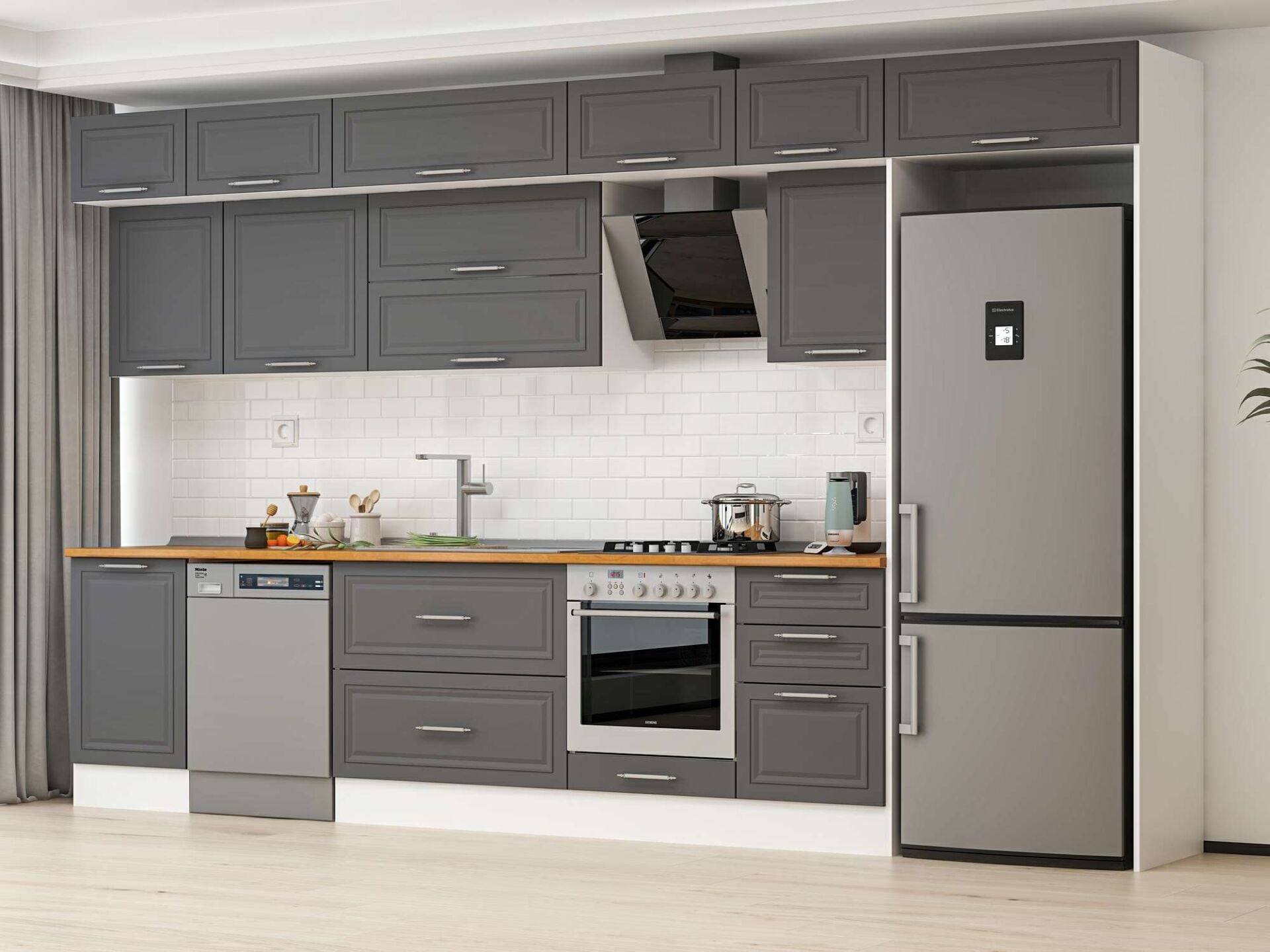 Alvinka 390X240 Cm Klasik Mebran Mutfak Dolabı Mb-E90S50S50-2 Mebran | Antrasit - Mdf