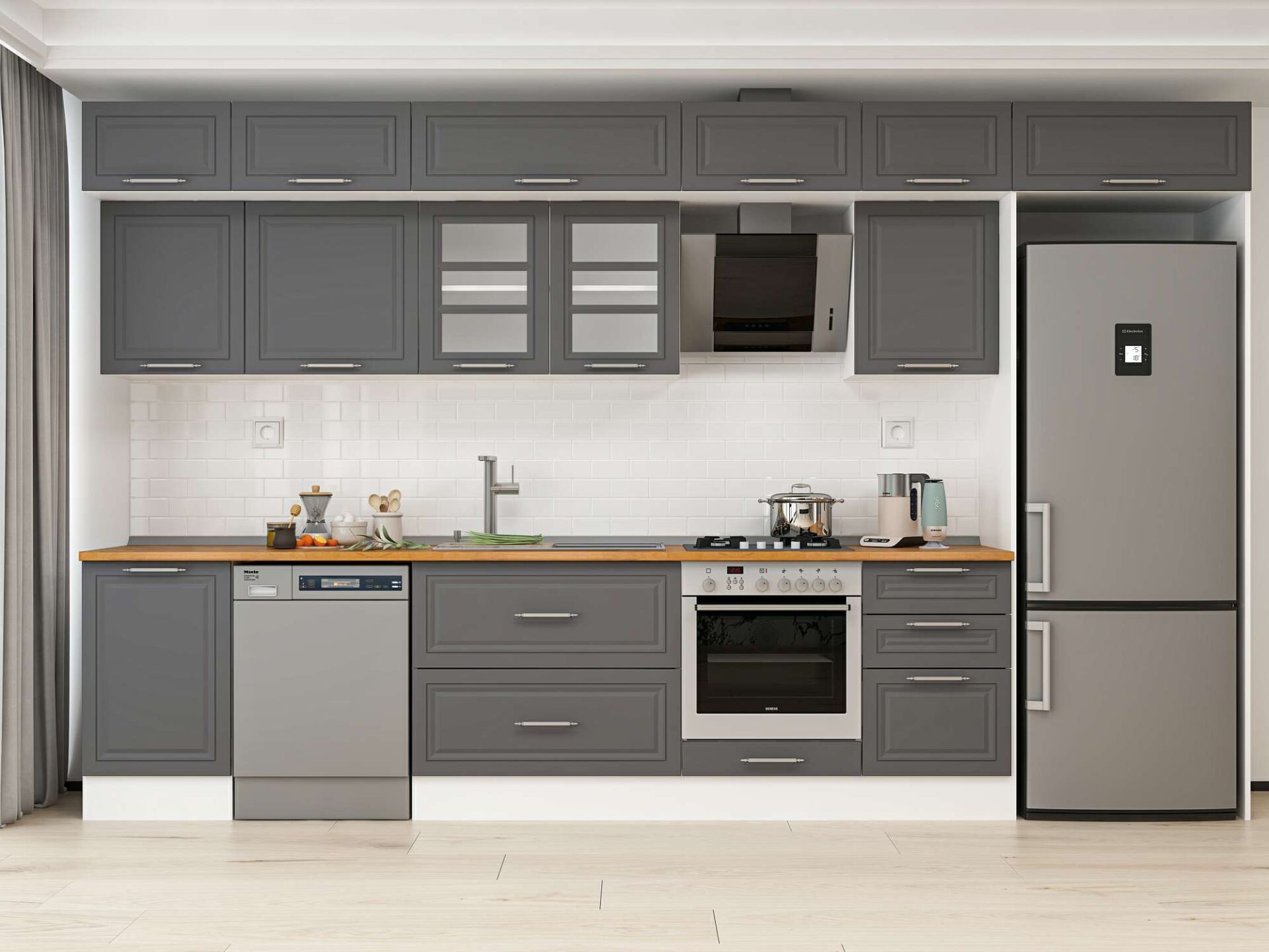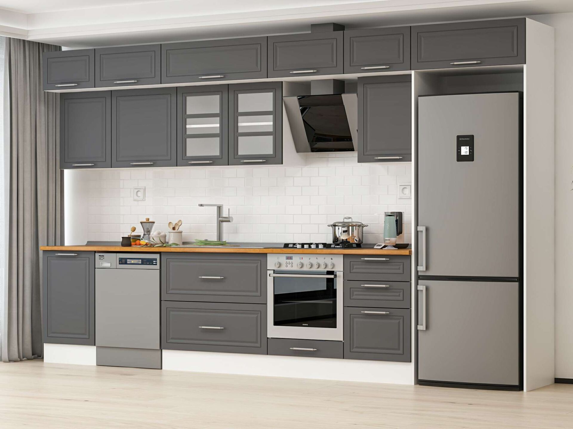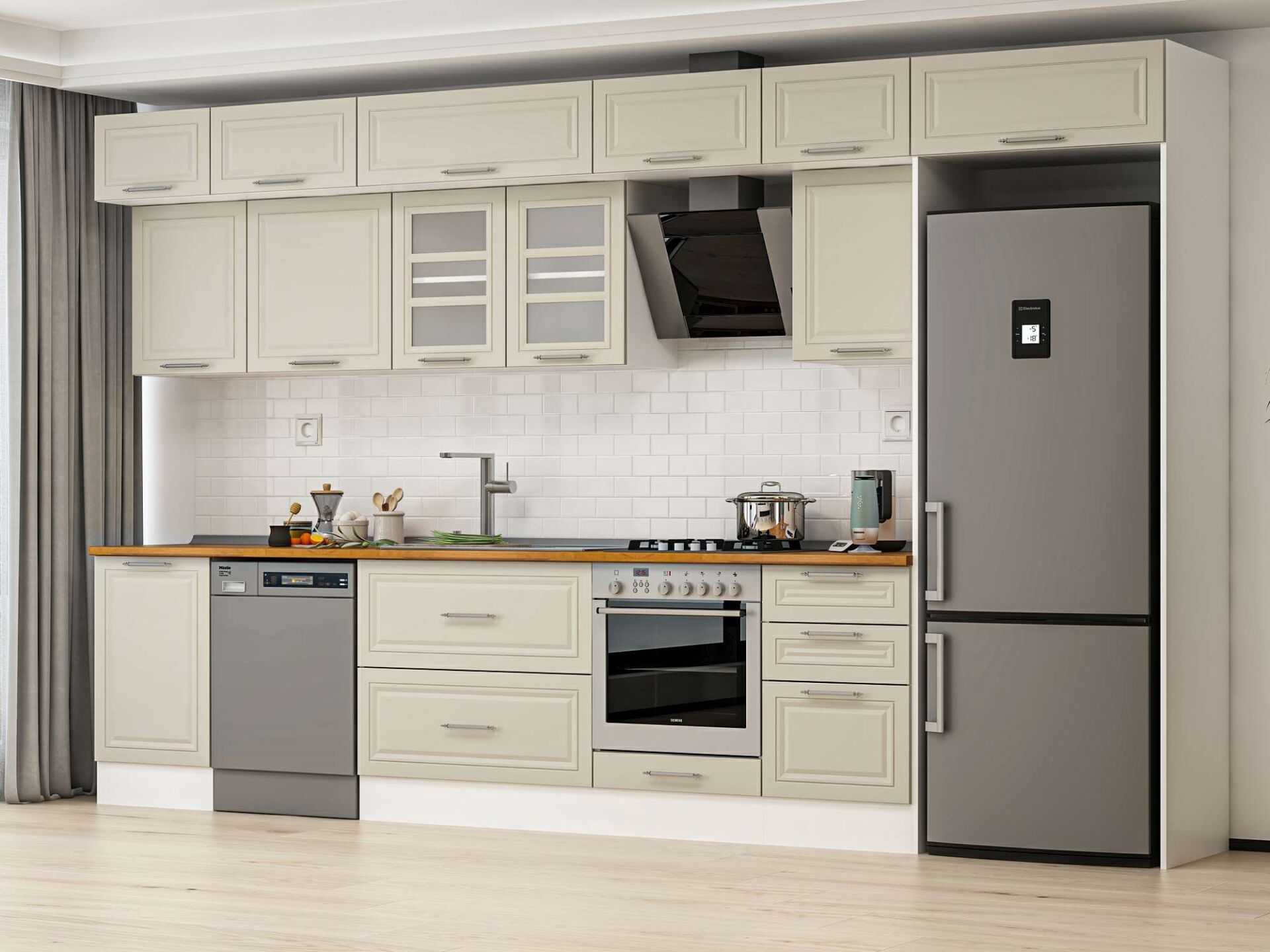 Alvinka 390X240 Cm Klasik Mebran Mutfak Dolabı Mb-E90S50S50-3