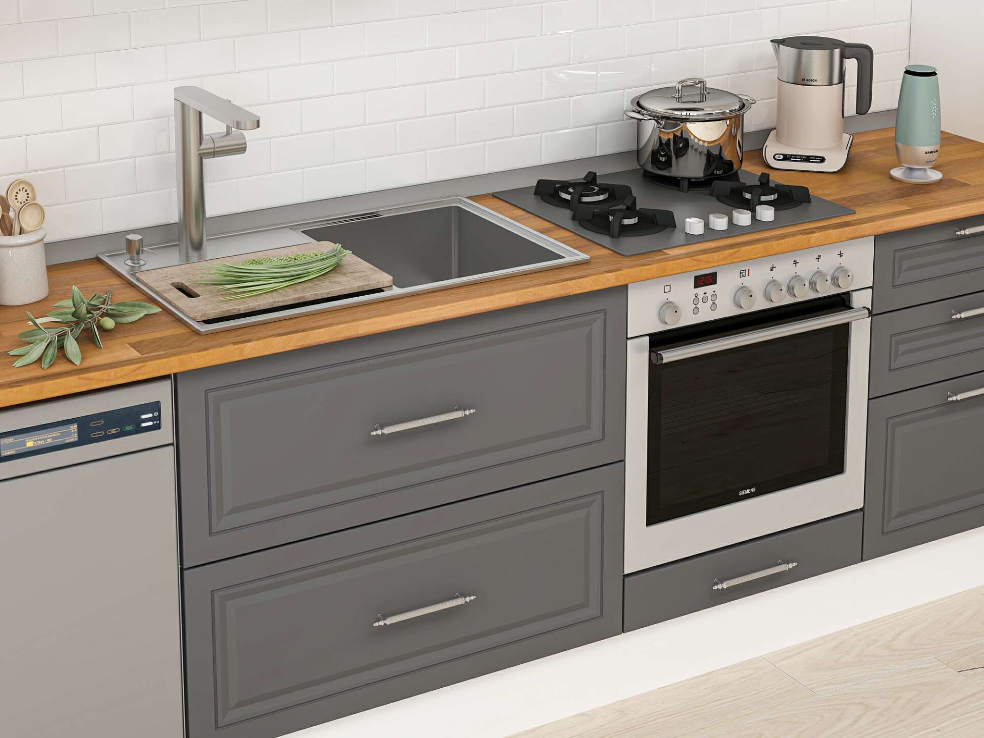 Alvinka 390X240 Cm Klasik Mebran Mutfak Dolabı Mbb-E80B50S60-3 Mebran | Antrasit - Suntalam