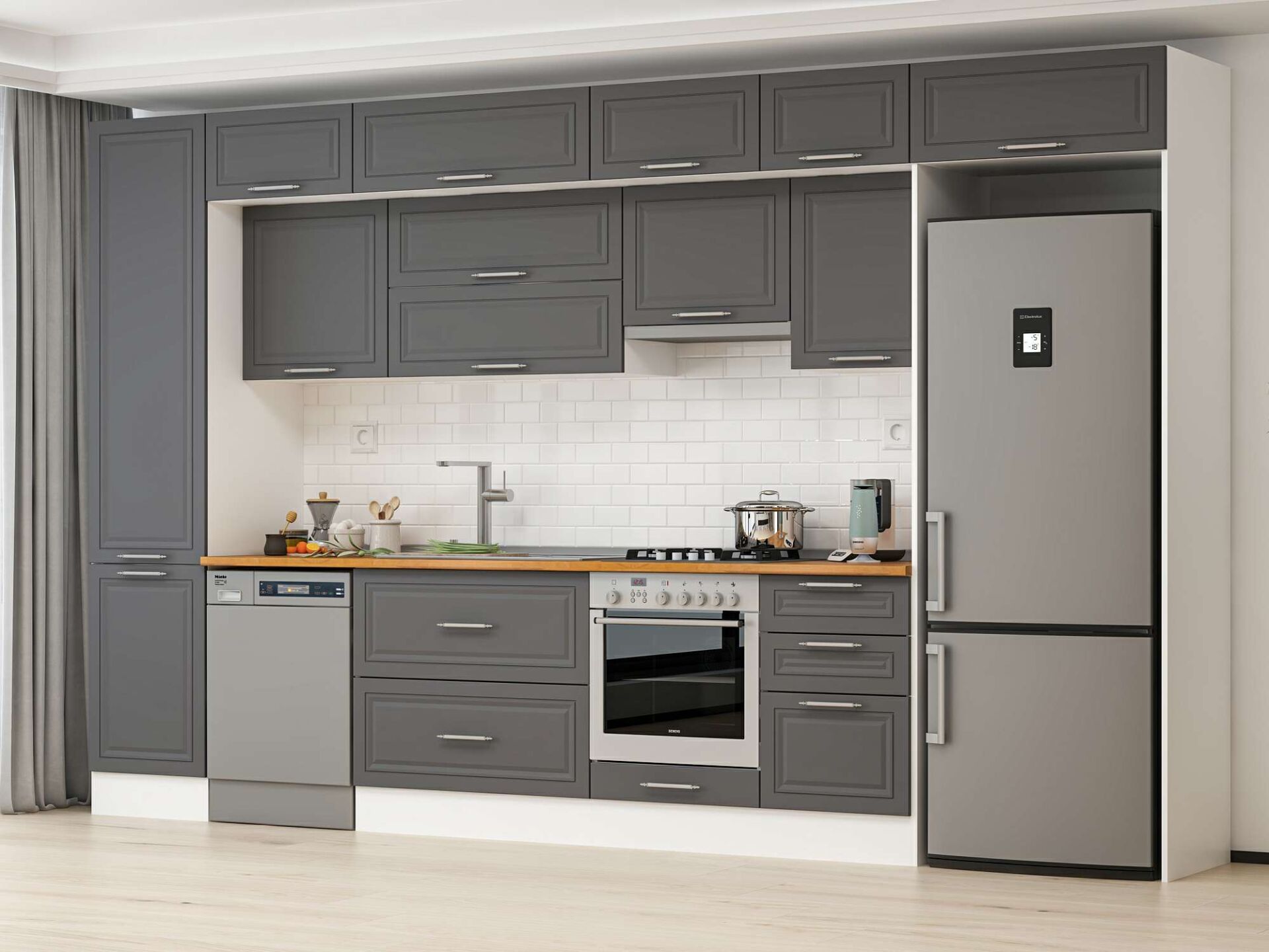 Alvinka 390X240 Cm Klasik Mebran Mutfak Dolabı Mbb-E90B50S50-1