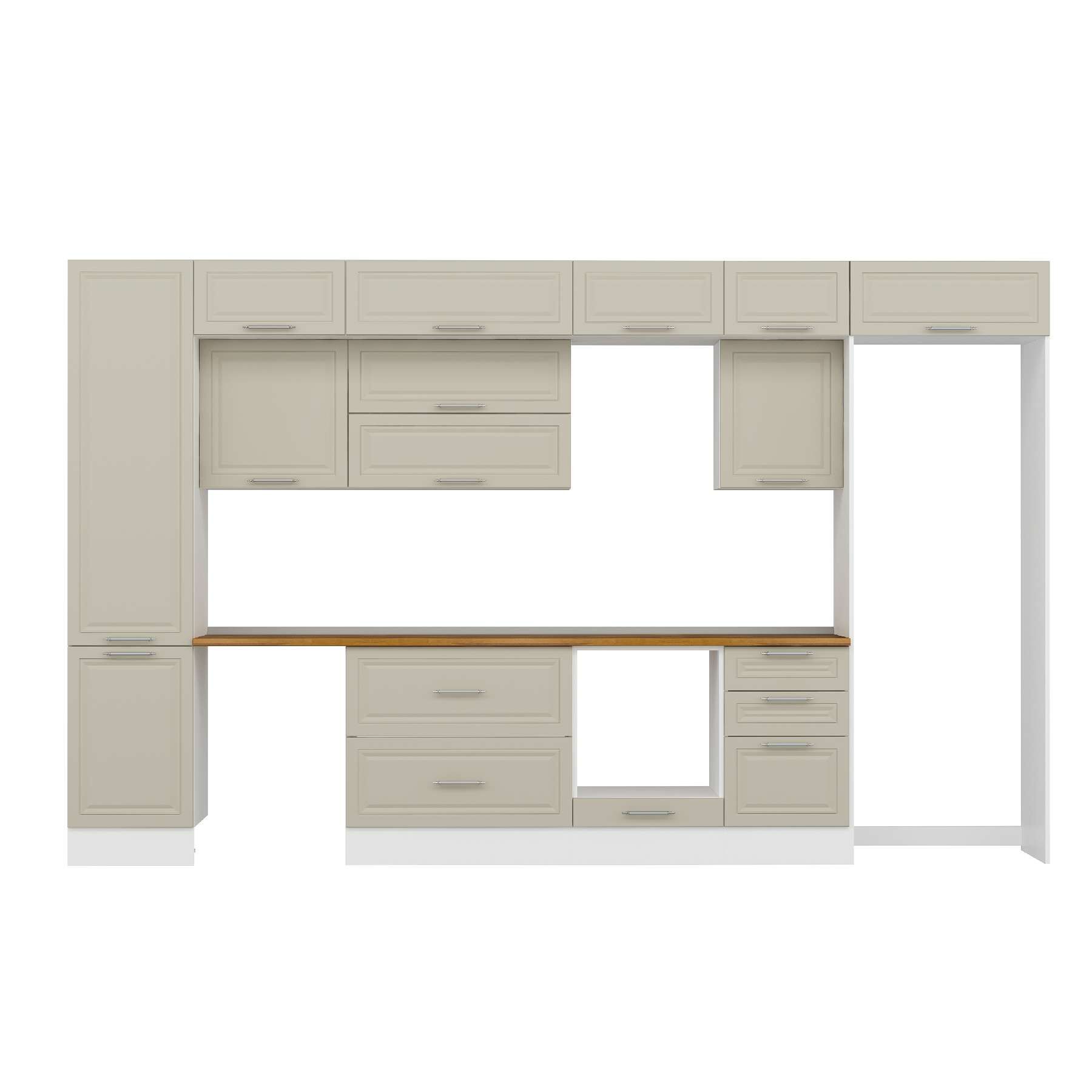 Alvinka 390X240 Cm Klasik Mebran Mutfak Dolabı Mbb-E90B50S50-2 Mebran | Kumtaşı - Mdf