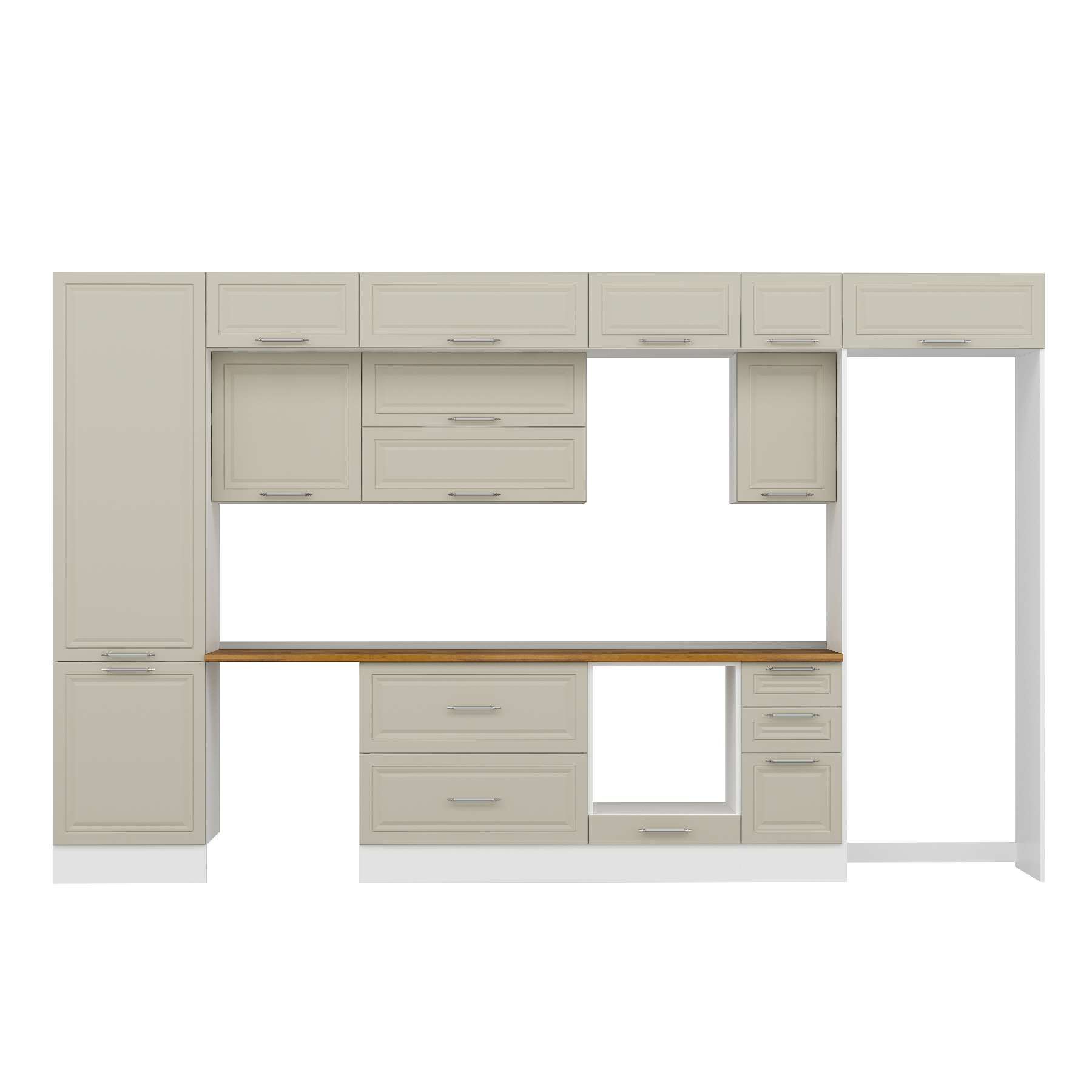Alvinka 390X240 Cm Klasik Mebran Mutfak Dolabı Mbb-E90B60S40-2 Mebran | Kumtaşı - Mdf