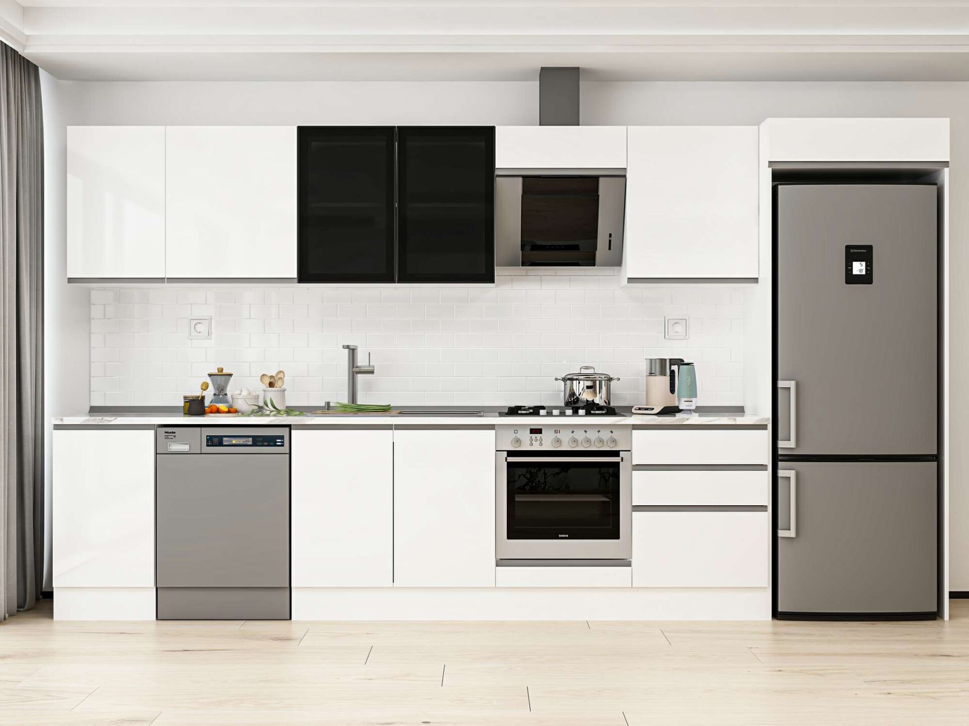Alvinka 395X222 Cm High Gloss Mutfak Dolabı Mb-E90S45S60-3 High Gloss | Beyaz - Suntalam