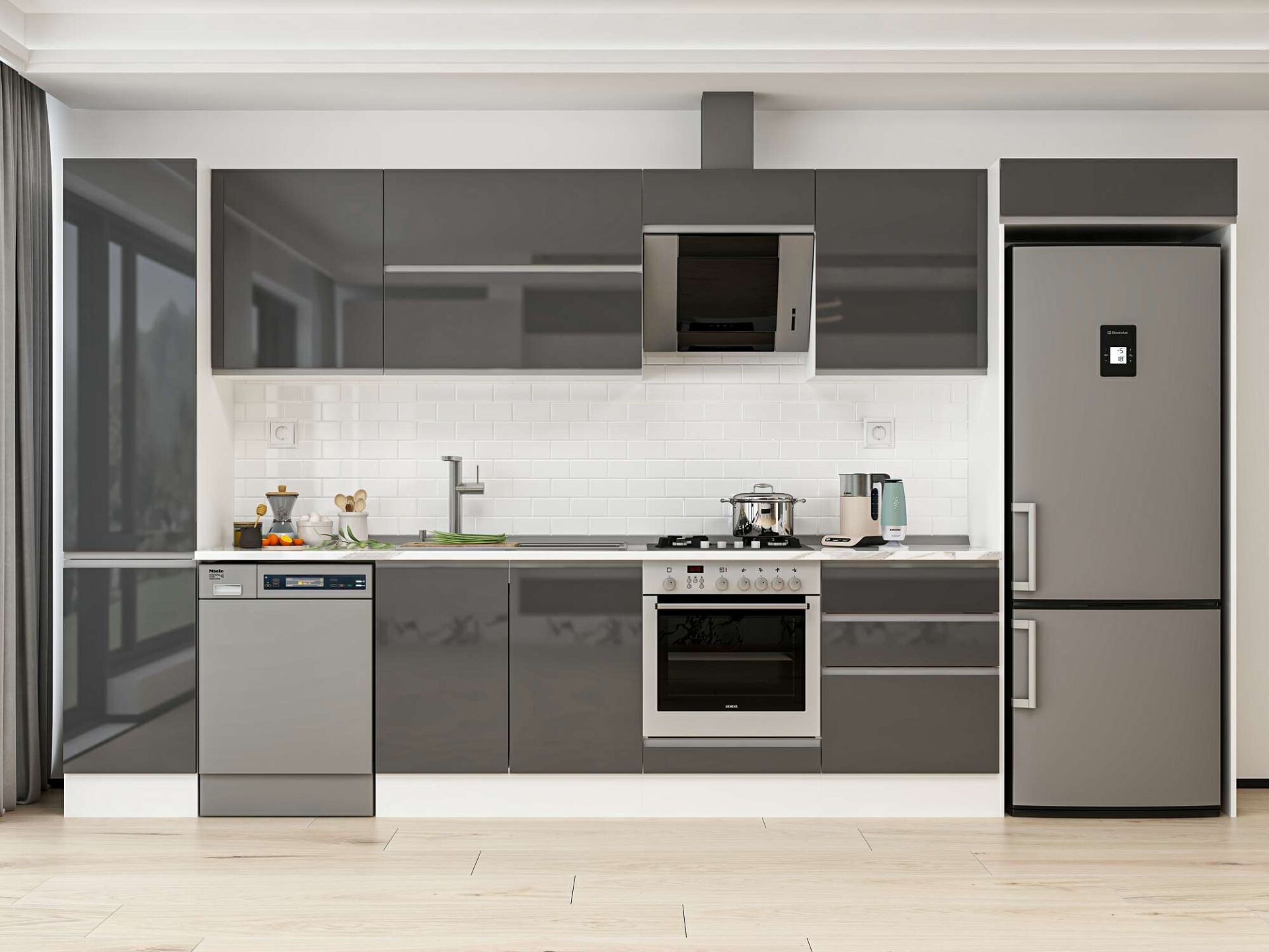 Alvinka 395X222 Cm High Gloss Mutfak Dolabı Mbb-E90B45S60-2