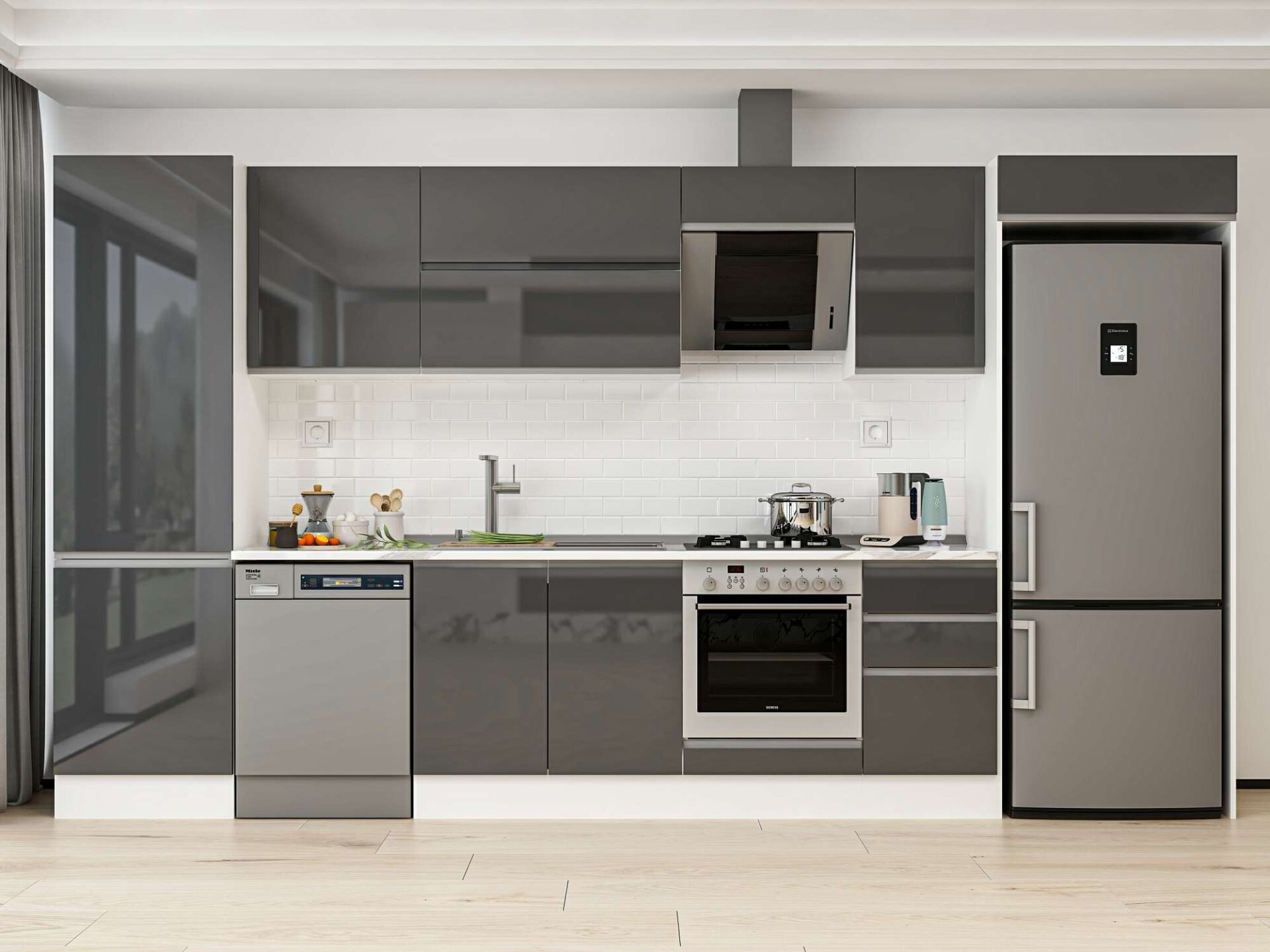 Alvinka 395X222 Cm High Gloss Mutfak Dolabı Mbb-E90B60S45-2