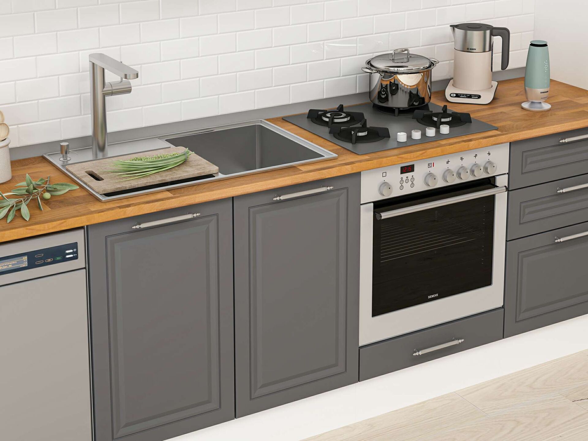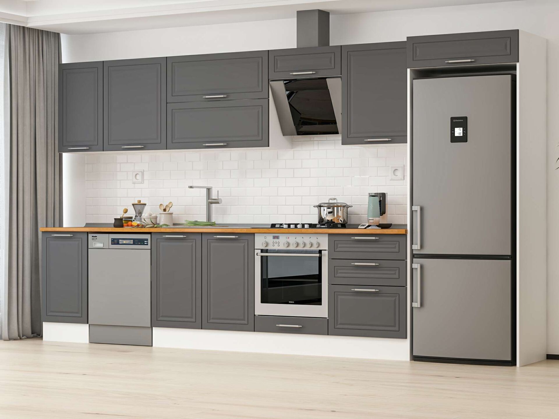 Alvinka 395X222 Cm Klasik Mebran Mutfak Dolabı Mb-E90S45S60-2 Mebran | Antrasit - Mdf