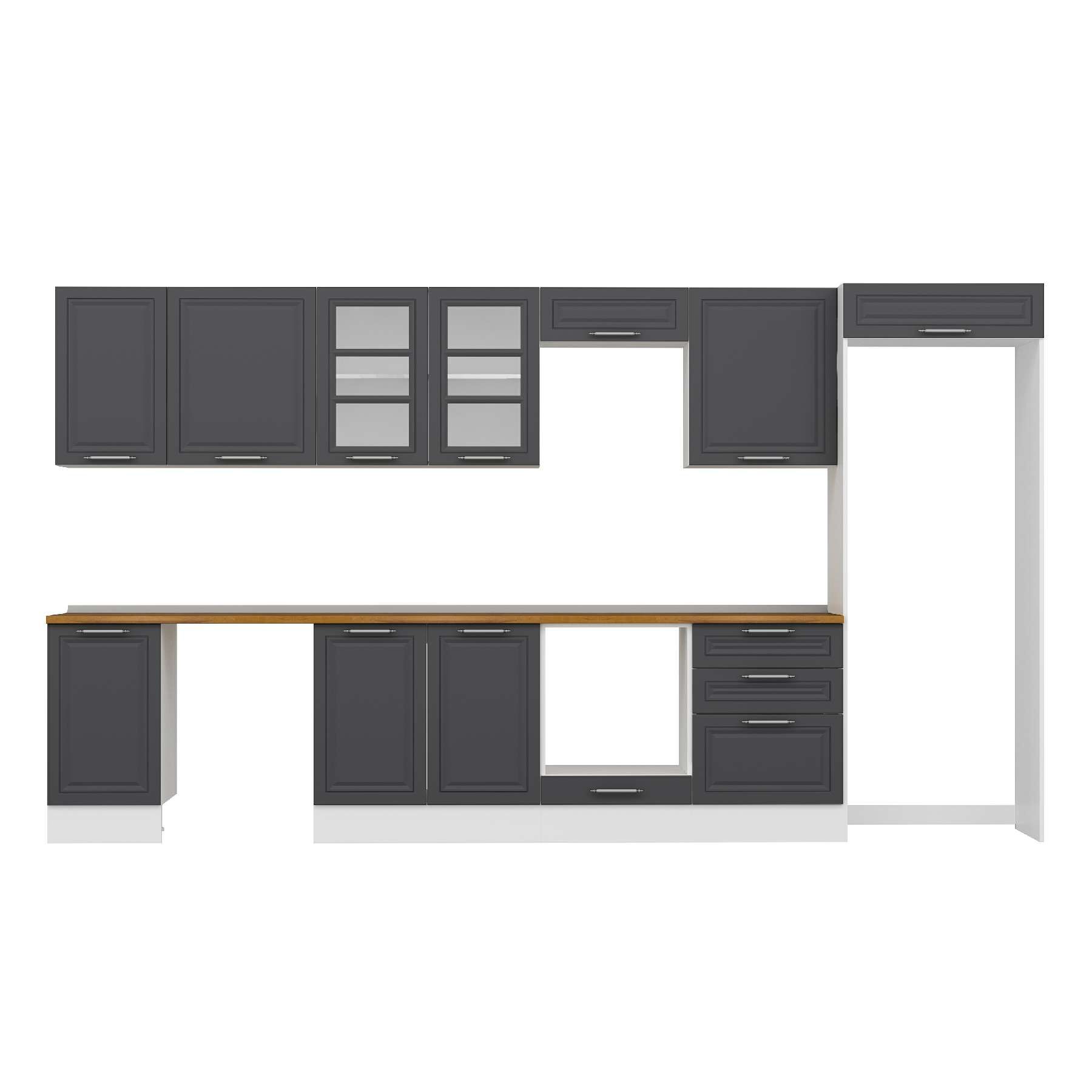 Alvinka 395X222 Cm Klasik Mebran Mutfak Dolabı Mb-E90S45S60-3 Mebran | Antrasit - Suntalam