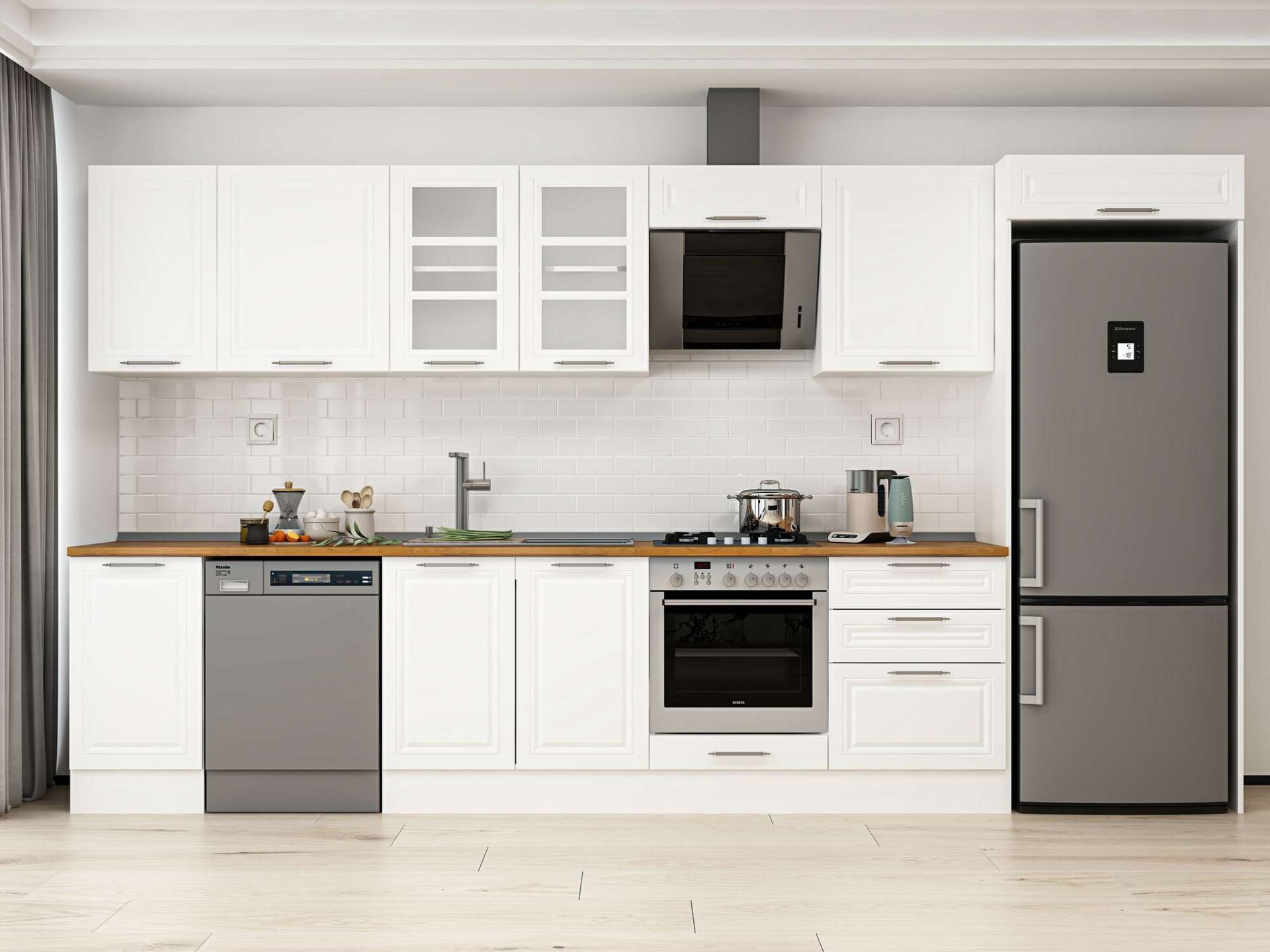 Alvinka 395X222 Cm Klasik Mebran Mutfak Dolabı Mb-E90S45S60-3 Mebran | Beyaz - Suntalam